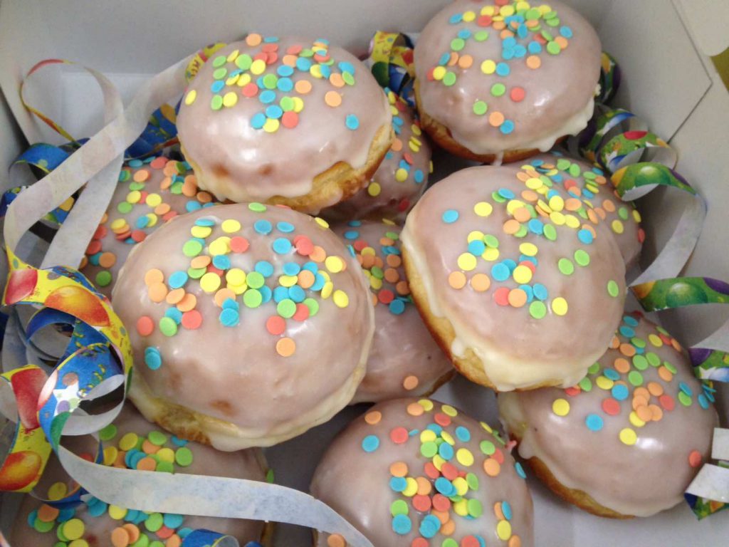 Wir sind gespannt und vertreiben uns die Zeit bis dahin mit dem Verkosten von Faschings-Naschereien.