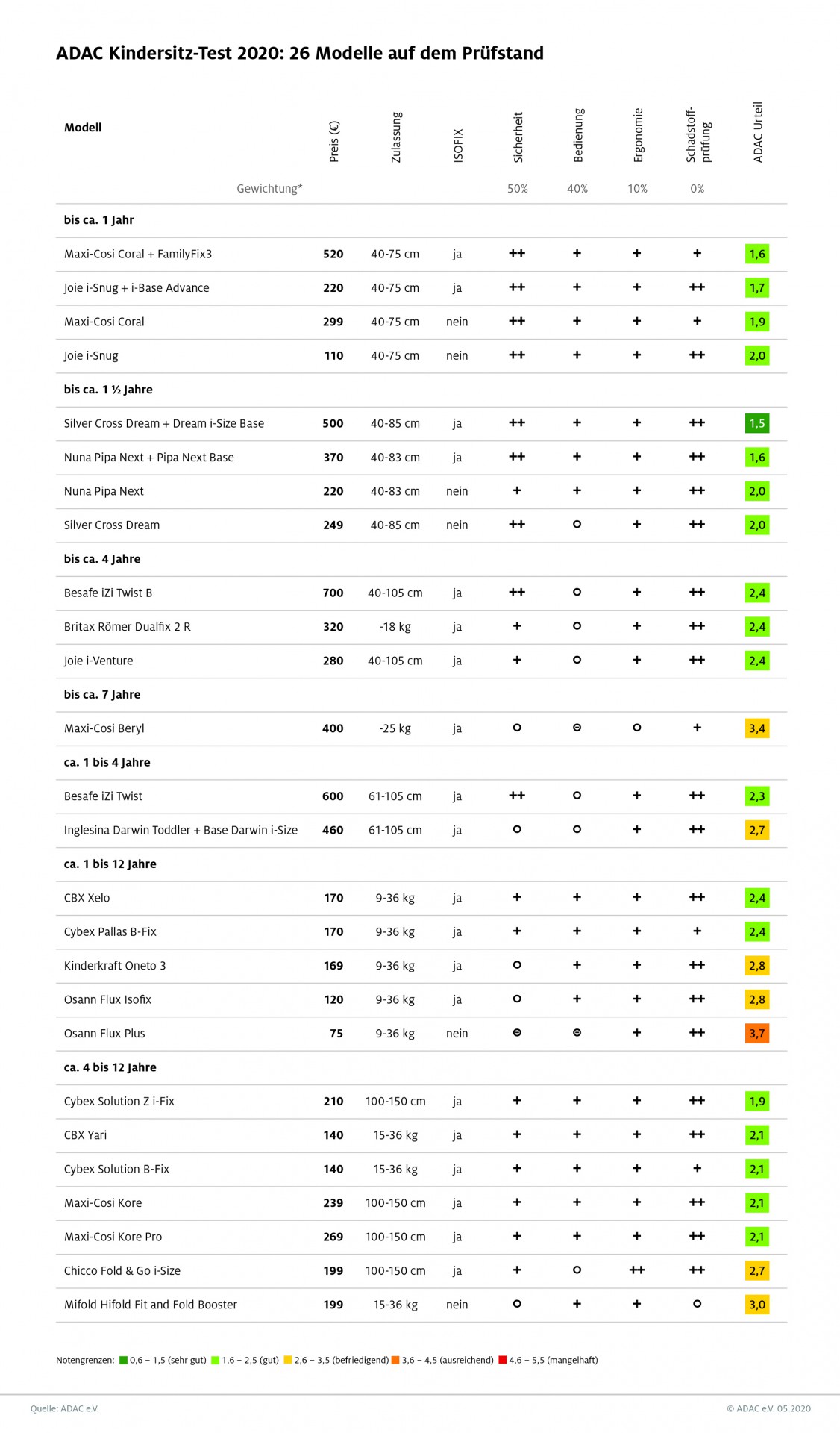 Weitere Details zu allen getesteten Sitzen gibt es unter adac.de