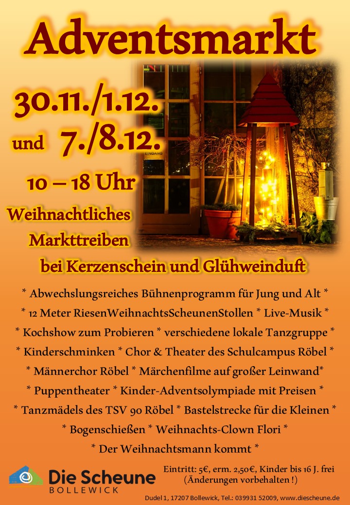 Pfefferkuchen, Glühweinduft und Kerzenflackern –der zauberhafte Mecklenburger Adventsmarkt in der Scheune Bollewick erstrahlt traditionell am ersten und zweiten Adventswochenende – mit Charme, besonderer Atmosphäre, überall nach Weihnachtsleckereien duftend und einem tollen Programm. In diesem Jahr zur Feier des 30-jährigen Jubiläums präsentiert Bäckermeister Andreas vom Café Landwunder den zwölf Meter langen Riesen-Weihnachts-Scheunen-Stollen, den er in Zusammenarbeit mit Brotsommelier Uwe Blättermann erschaffen hat. Der feierliche Anschnitt erfolgt am Sonnabend, 30. November, um 11 Uhr. Aber natürlich wird in der Scheune noch viel, viel mehr geboten.