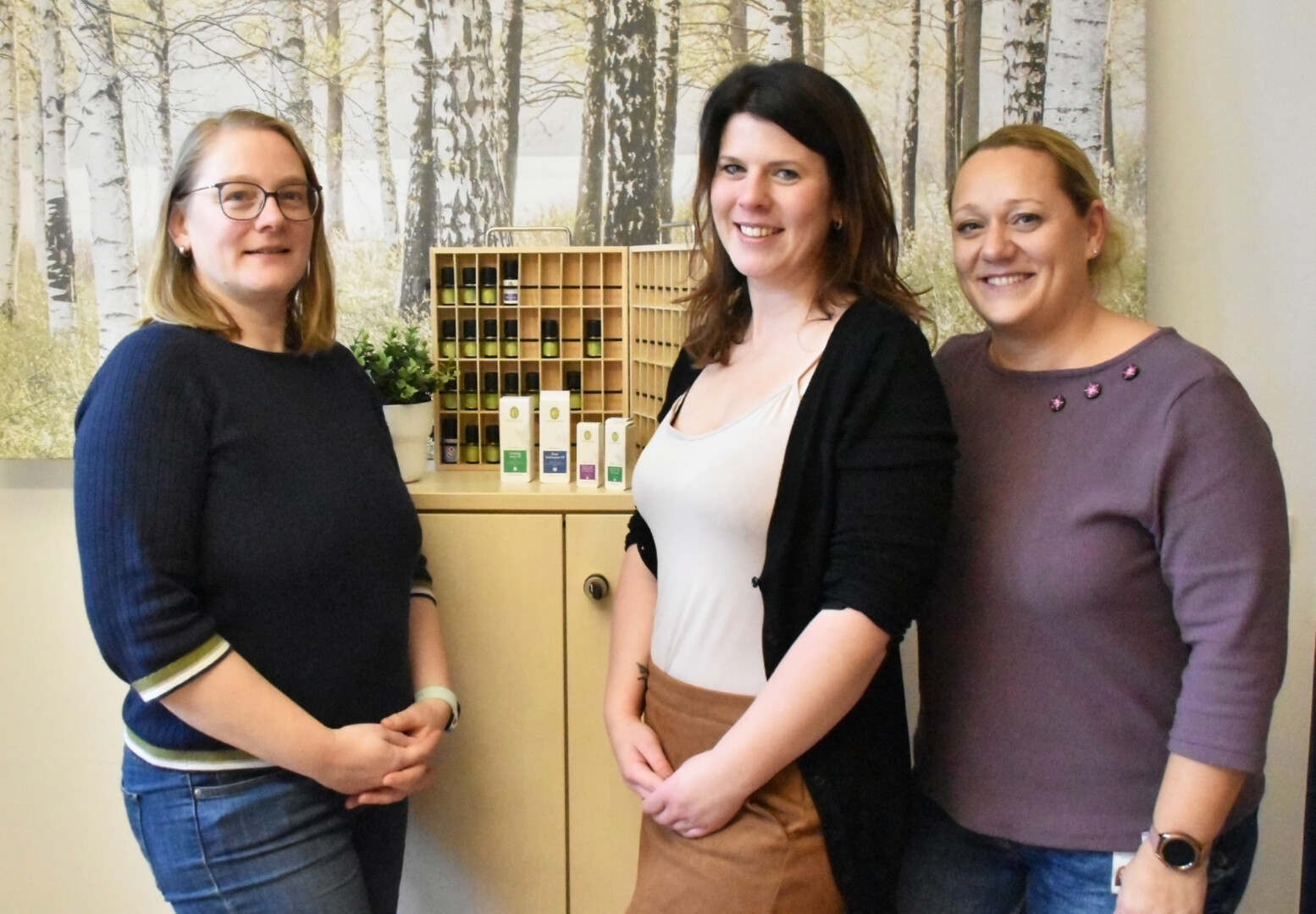 Bild im Text: Heike Oldach (v. l.), Maren Lenz und Nicole Reetz bringen die Aromen zum Patienten, um deren Wohlbefinden zu verbessern.