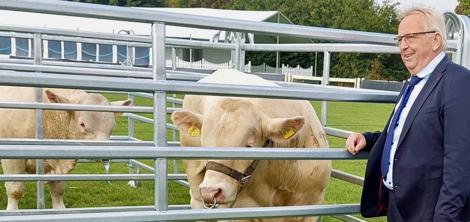 Nach 1990 galt es zunächst als unsicher, ob die Rasse im gesamten Deutschland anerkannt wird. Doch das passierte 1993 dann endgültig und seither haben sich die Tiere zu einer der wichtigsten Fleischrindrassen in MV und Brandenburg entwickelt. Die Bullen – von ihnen wurden „Holger“ und „Gustav“ aus Papendorf bei Rostock schon mal gezeigt – werden bis zu 1300 Kilogramm schwer. Mit dem nötigen Respekt näherte sich auch Agrarminister Till Backhaus den beiden Zuchttieren.