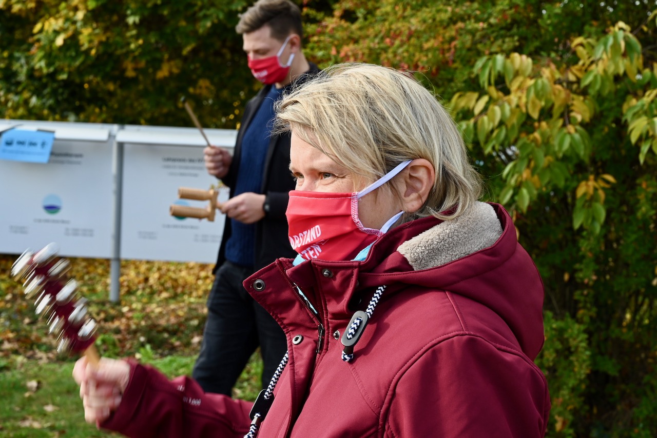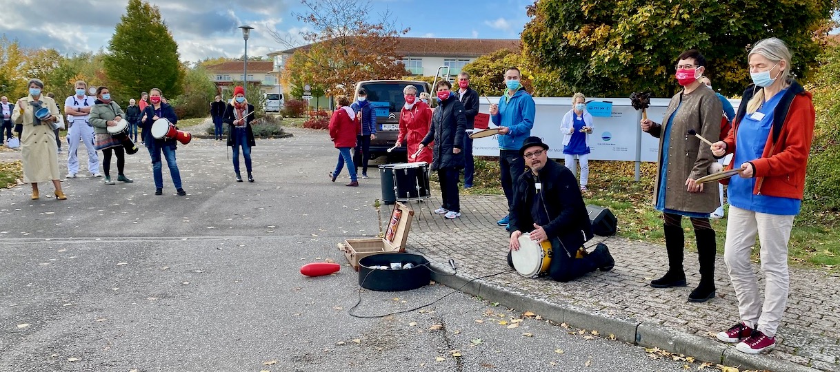 Mit Trommeln und Rasseln haben rund 50 Mitarbeiter in der Mittagspause vor dem Klinikgelände protestiert und deutlich gemacht, dass sie so nicht mit sich umgehen lassen. „Wir haben hier ein tolles Betriebsklima, sind eine professionelle Klinik und machen ganz viel für die Patienten. Das muss durch den Arbeitgeber auch gewürdigt werden“, so Matthias Hübner, Musiktherapeut und stellvertretender Betriebsratschef.