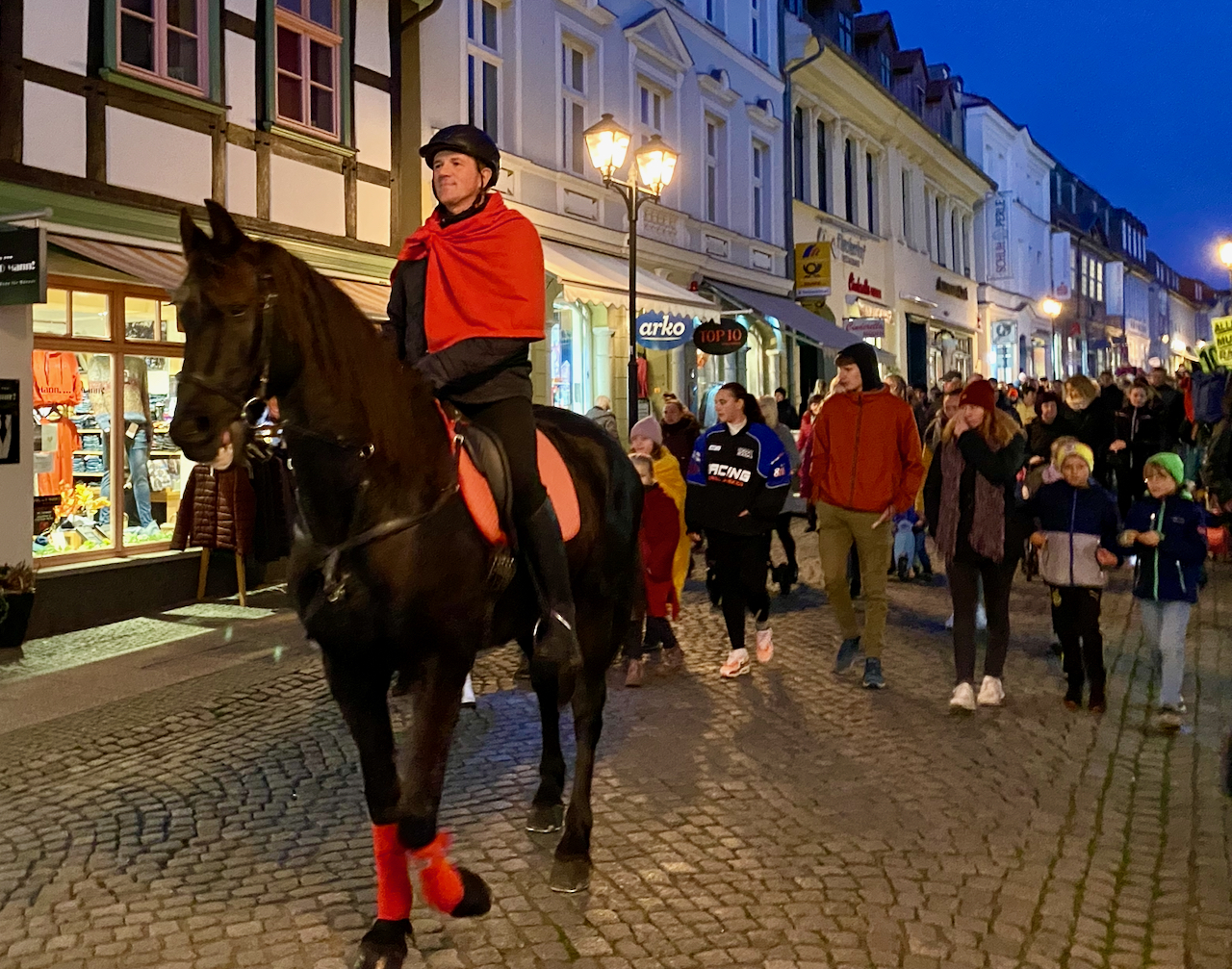Mit anderen Teilen und damit Licht in das Dunkel von Kindern und Hilfsbedürftigen bringen, war das Motto des St. Martins Umzug am 11. November. Mehr als 250 Kinder und Erwachsene waren auf dem Neuen Markt zusammengekommen, um mit ihren Laternen St. Martin auf dem Pferd bis zum Pfarrgarten der katholischen Gemeinde zu folgen. Dort gab es Martinshörnchen, die unter Hygieneregeln geteilt wurden. St. Martin teilte seinen Mantel mit einem Bettler, die Kinder folgten seinem Beispiel und spendeten 440 Euro für Kindereinrichtungen und Suppenküchen in Litauen. Der Malteser Hilfsdienst aus Waren wird das Geld und andere Sachspenden zum Nikolausfest nach Litauen bringen. „Allen die so reichlich gespendet haben ein herzliches Dankeschön“, heißt es von der Gemeinde.