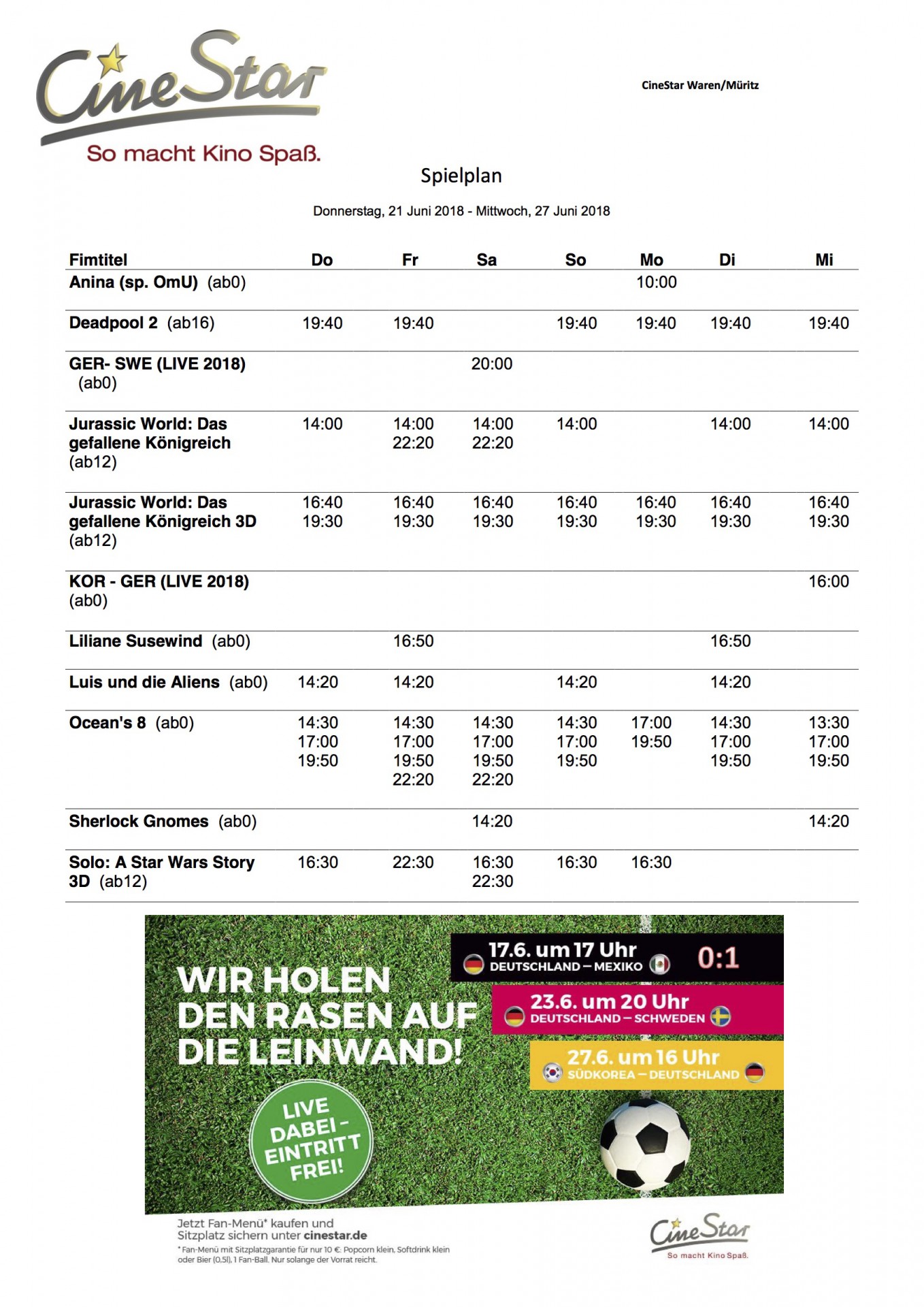 Hier das aktuelle Kinoprogramm des CineStar Waren: