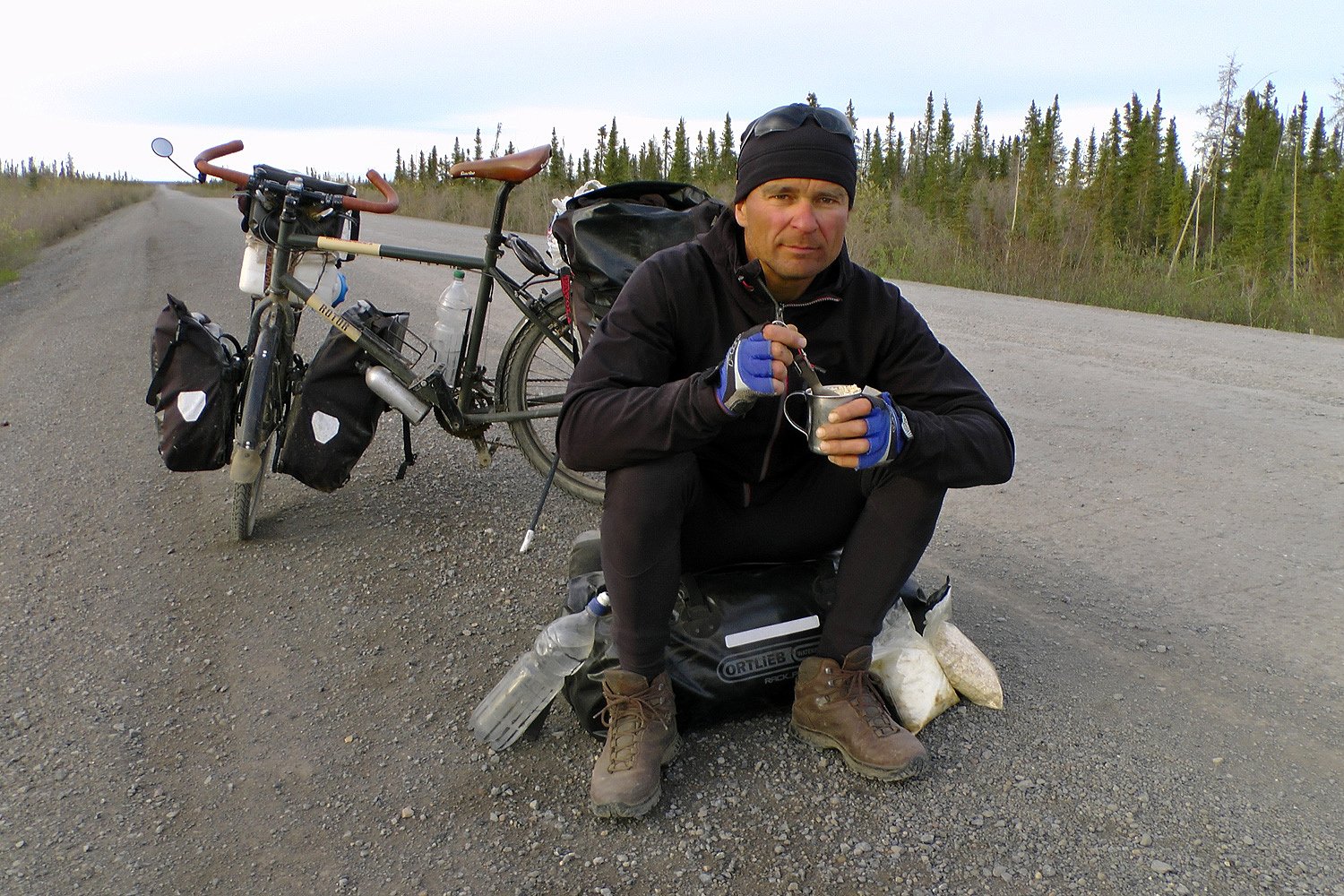 Im Mai des Jahres 2013 landete der Weltenradler mit seinem neuen Expeditionsrad in Alaska. Sein Weg führte ihn zunächst nach Norden – in die Arktis, wo er die Stadt Inuvik besuchte. Von dort reiste er nach Süden, durch das Yukon Territorium auf dem Alaska Highway, durch British Columbia bis nach Vancouver am Pazifik. Die Räder rollten weiter in den Osten dieses riesigen Landes.