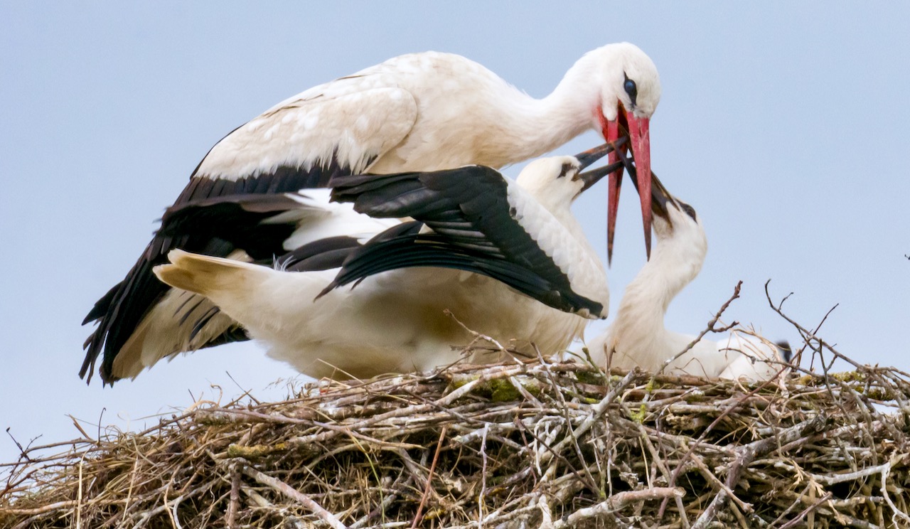 Einen tollen Einblick in das Leben von Familie Storch geben diese Bilder, die Mario Raschke heute in Laschendorf gelungen sind. Die Bilder zeigen die Storchenmama bei der Futtersuche, bei der Fütterung und die ersten Flugversuche von einem Baby-Storch.
