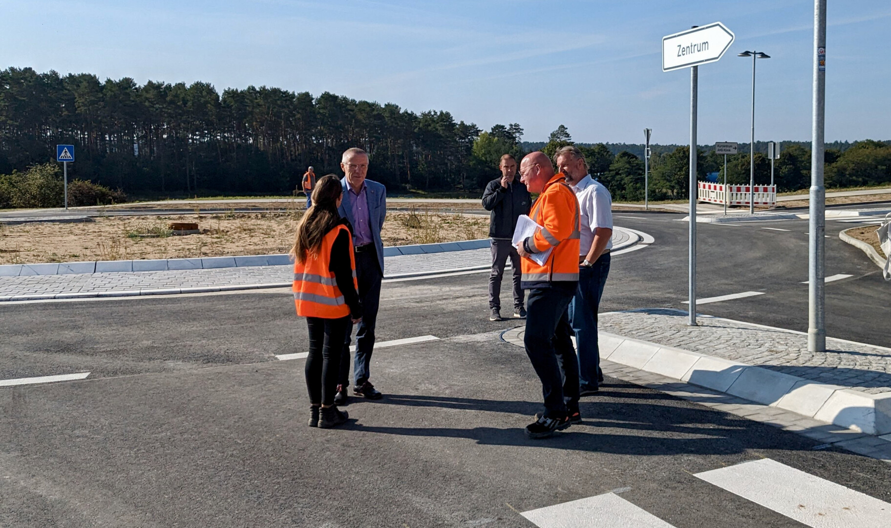 Der Kreisel hat vier „Arme“ und soll bestehende „Konfliktpunkte“ entschärfen. Zudem rechnet die Verwaltung durch das neue Wohngebiet, das gerade erschlossen wird, mit deutlich mehr Verkehr.