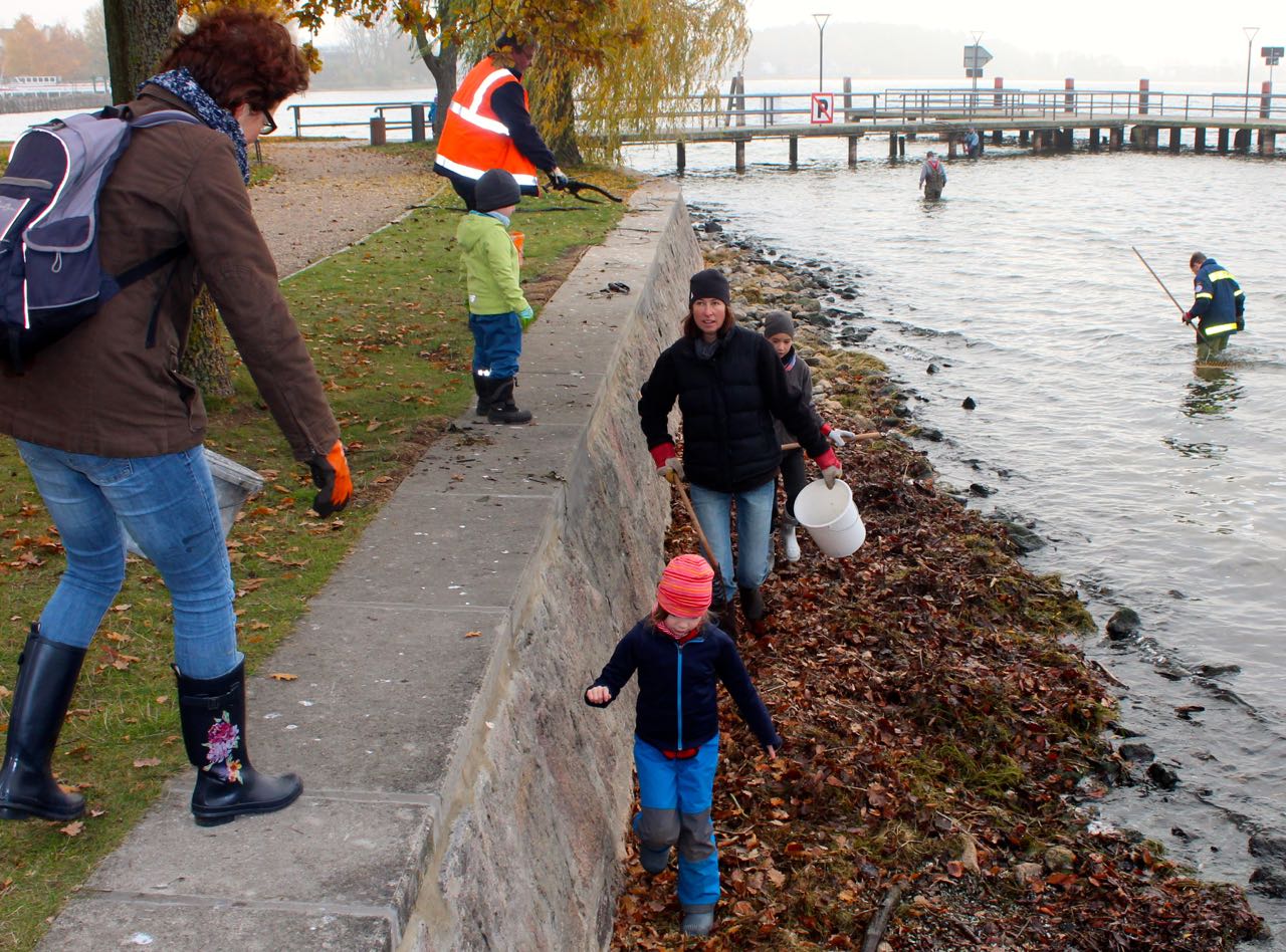 (Seeseitig als auch im Strandbereich verschiedenste Materialien im Wasser und in Büschen, besonders zu beachten sind auch trockengefallene Randbereiche, hier liegen viele Flaschen)