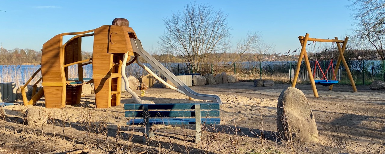 An diesem Standort gab schon seit Jahrzehnten einen Spielplatz, doch die alten Geräte hatten mindestens 40 Jahre auf dem Buckel. Mit Zaun als Abgrenzung zum Wasser sowie schickem Eingangsbereich macht die Stadt für diesen Spielplatz etwa 75 000 Euro locker.