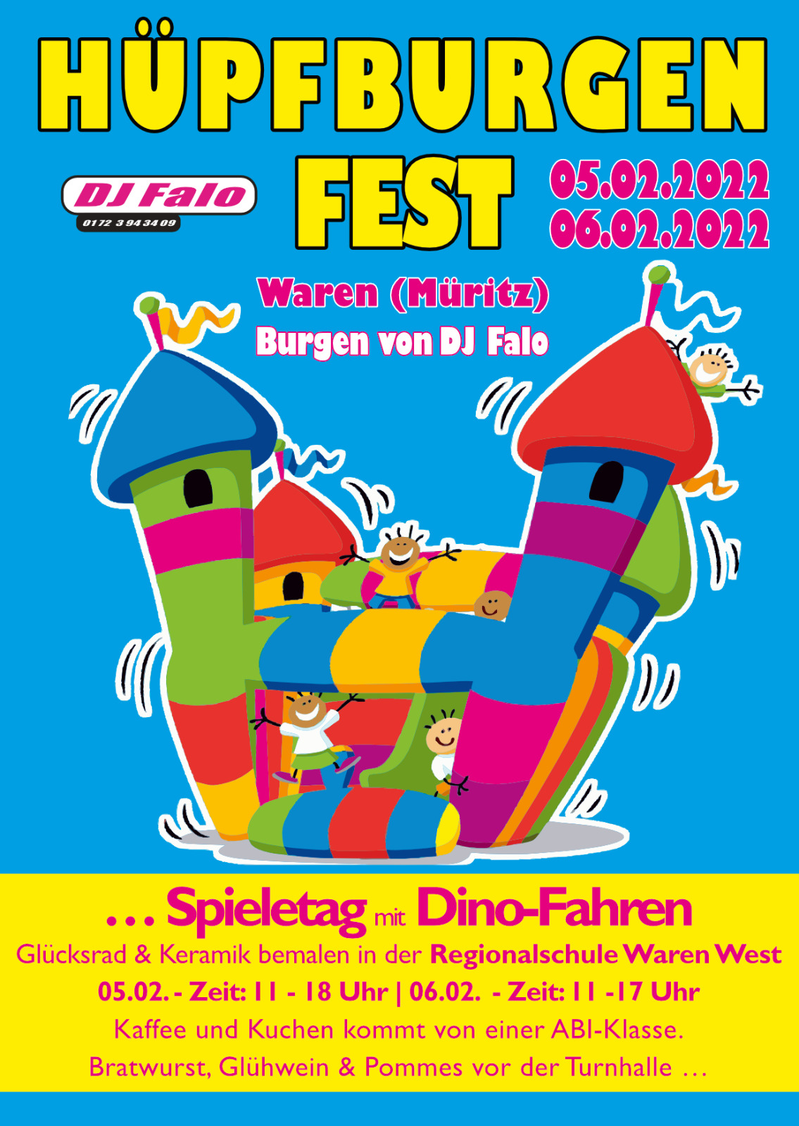 Rechtzeitig zu Ferienbeginn ist auch wieder etwas los an der Müritz: Am kommenden Sonnabend und Sonntag, 5. und 6. Februar, hat DJ Falo in der Turnhalle der Regionalen Schule Waren ein großes Hüpfburgenfest organisiert.
