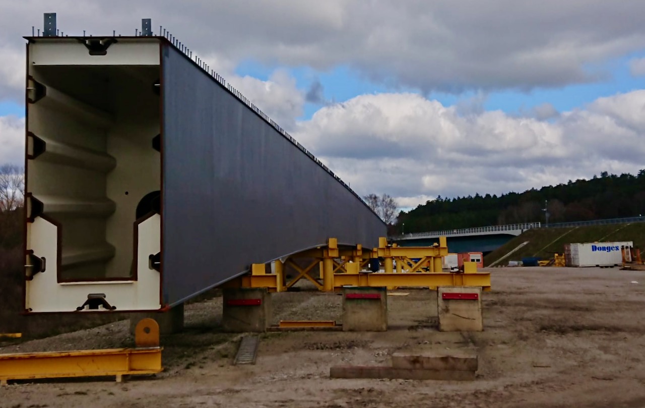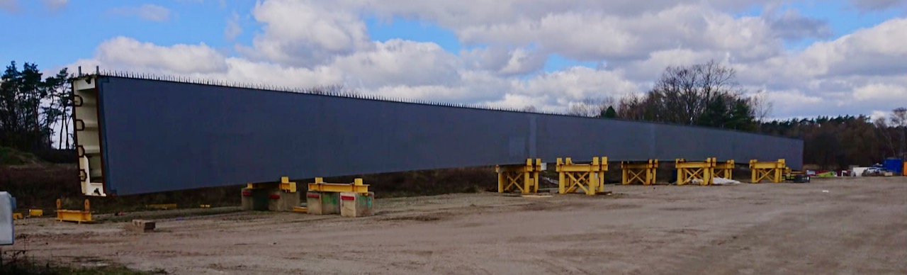 Langsam ist ein Ende in Sicht: Beim Neubau der zweiten Autobahn-Teilbrücke der A19 über den Petersdorfer See bei Malchow wird es am Dienstag besonders knifflig. Die Bauarbeiter haben das riesige Mittelteil der Brücke zusammengeschweißt und es wird im Lauf des Tages „eingeschwommen.“ Dazu muss das Riesen-Stahlhohlprofil zunächst auf spezielle Rollwagen gehoben werden, die das Herzstück der Brücke dann behutsam Zentimeter für Zentimeter zu einem Schwimmponton bugsieren, ähnlich wie 2018 beim westlichen Brückenteil.