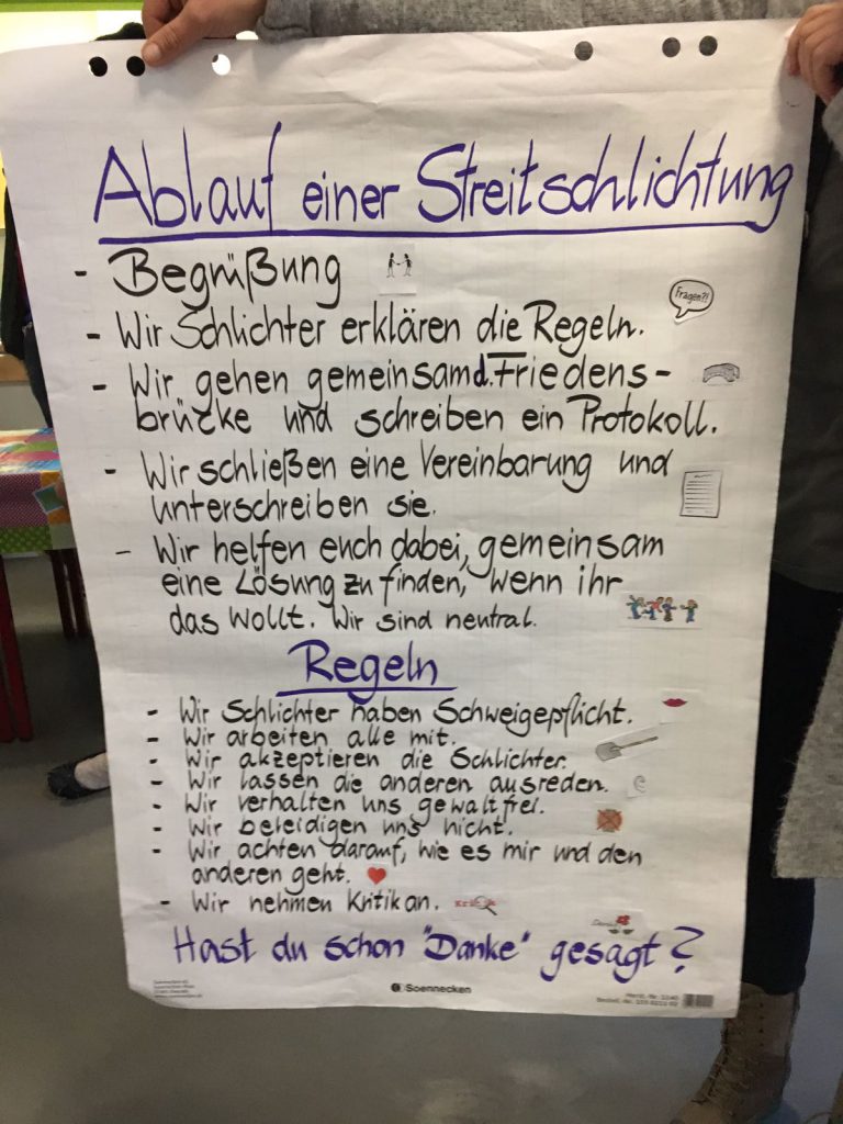 Paul Hanusrichter, Edwin Mörke, Friedemann Gipp, Sontje Steinfurth und Fine Mecklenburg sind die Streitschlichter. Sie unterliegen der Schweigepflicht, haben gelernt, wie sie Konflikte ruhig und sachlich lösen können und wollen ihre Aufgabe natürlich sehr ernst nehmen.