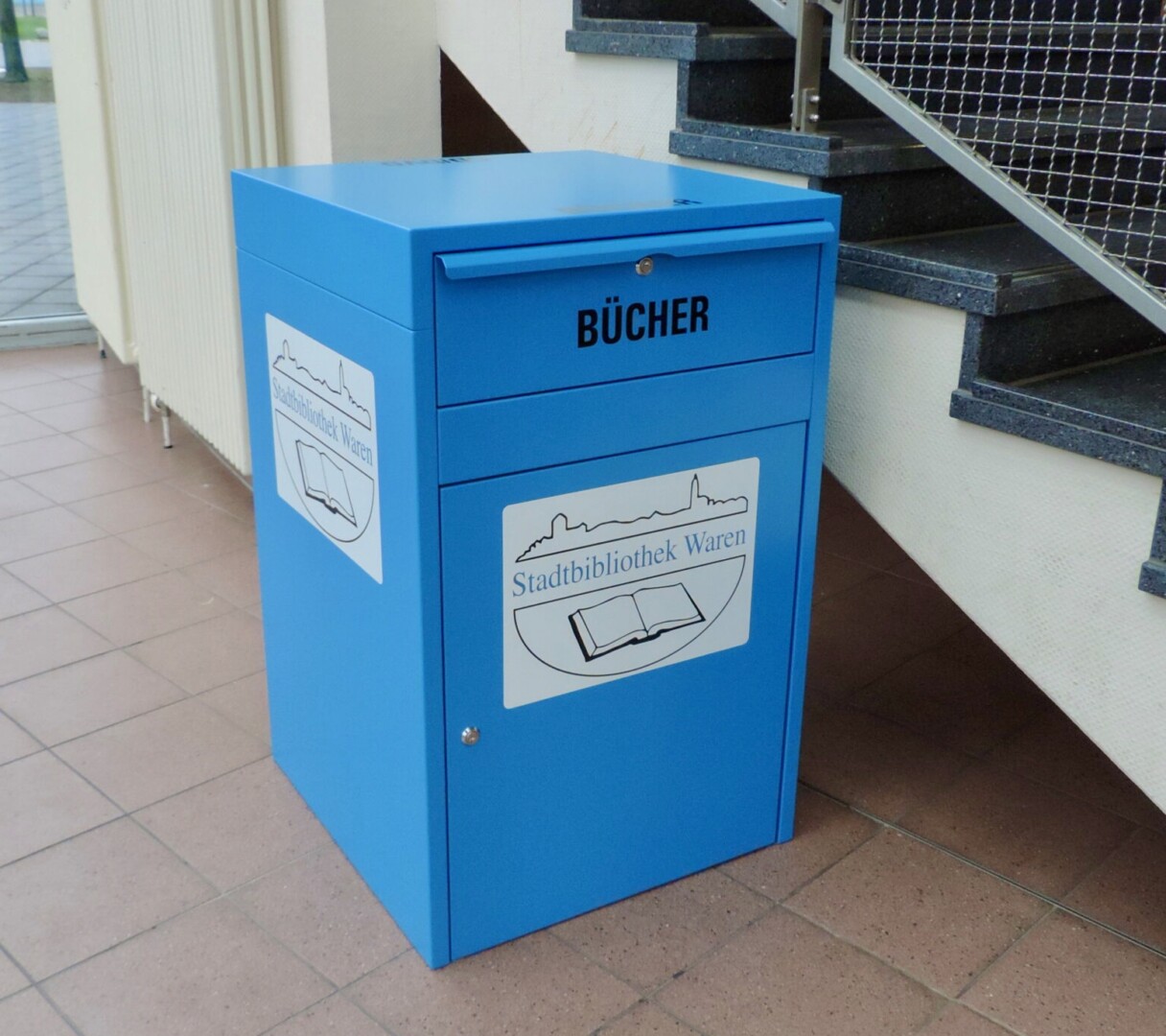 Nach langer Planung gibt’s jetzt auch in der Warener Stadtbibliothek eine Rückgabebox. Sie steht gut sichtbar im Foyer des Bürgerhauses, links neben der Treppe zur Bibliothek und zum Bürgersaal. Mit dieser im Blau der Stadt gehaltenen Kiste können nun alle Nutzer ihre entliehenen Medien auch außerhalb der Öffnungszeiten der Bibliothek zurückgeben. „Wir freuen uns, dass wir den Service für unsere Nutzer endlich erweitern konnten“, so Axel Graff als Leiter der Bibliothek. Ein Hinweis am Rande: Die Rückgabebox ist nicht für Schenkungen bibliotheksfremder Medien gedacht.