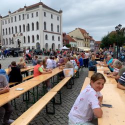 DJ Olaf Gaulke hat bewiesen, dass er nicht nur moderieren und Musik machen, sondern auch perfekte Bratwurst grillen kann, und Seehotel-Chef Sirko Schönbeck versorgte die Gäste mit Getränken.
