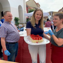 Der Kuchen – immerhin um die 1200 Stück – ist bis auf den letzten Krümel verputzt worden.