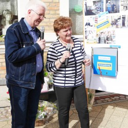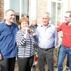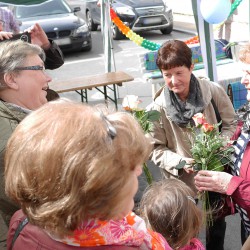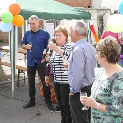 Schon am frühen Morgen wurde der Glockengießer Weg komplett gesperrt und mehrere Pavillions mit Sitzgelegenheiten aufgebaut. Und als Gundula Tietz in „ihrer“ Straße ankam, warteten dort zu ihrer Überraschung zahlreiche Anwohner, Freunde, Bekannte und ehemalige Mitarbeiter auf sie.