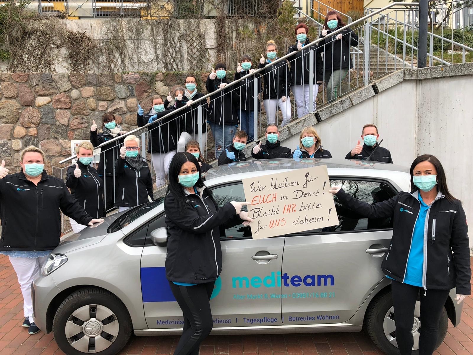 Auch die Mitarbeiter des Warener Pflegedienst mediteam appellieren dringend an ALLE: „Bleibt bitte zu Hause!“ Nur so sei die Ausbreitung des Coronavirus zu bremsen. Möglicherweise die einzige Chance für das Gesundheitssystem, die Krise zu bewältigen.