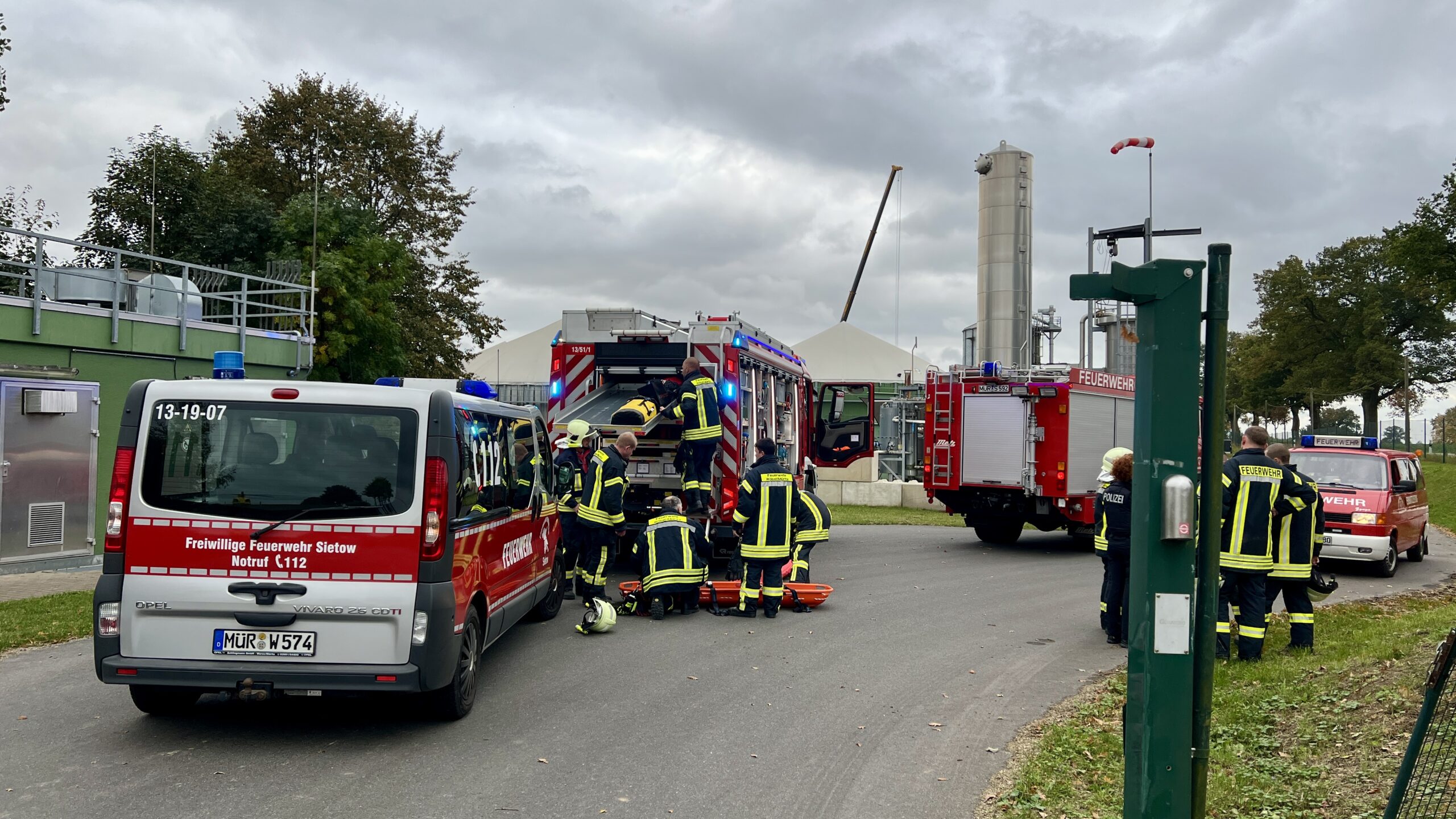Dramatische Rettungsaktion heute Nachmittag auf dem Gelände der Biogasanlage in Groß Kelle bei Röbel. Dort ist ein 29 Jahre alter polnischer Arbeiter bei Reinigungsarbeiten rund sieben Meter tief von der Rüstung in das Silo gefallen. Dabei erlitt der Mann, der ansprechbar war, schwere Verletzungen und wurde mit dem Rettungshubschrauber in ein Krankenhaus geflogen. Doch ihn aus dem Silo zu holen, war gar nicht so leicht.