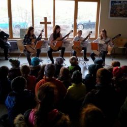Großen Anklang fand das musikalische Singspiel „Kikeriki, ein Hahn auf Weltreise“, das in Zusammenarbeit mit der Kreismusikschule, Haus Acht und Kindern der Arche Schule entstanden ist.