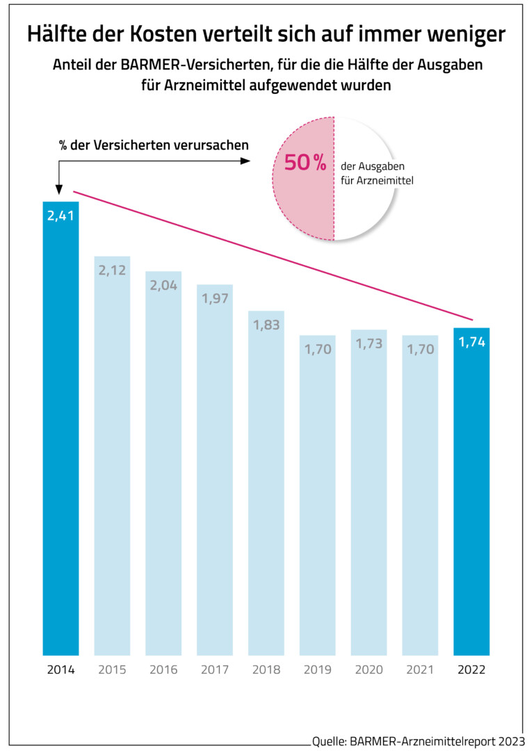„Gerade die Kombination vermeintlich harmloser Schmerzmittel kann fatale Folgen haben. Die meist durch mehrere Ärzte verordnete Therapie ist ohne digitale Unterstützung kaum mehr überschaubar“, sagte Prof. Dr. med. Christoph Straub, Vorstandsvorsitzender der Barmer. Er forderte den konsequenten und verbindlichen Einsatz digitaler Helfer in der Arzneimittel-Versorgung, um den Überblick über die Gesamtmedikation und alle Neben- und Wechselwirkungen zu behalten. Das sei zwingend erforderlich, da es eine nebenwirkungsfreie Schmerzmitteltherapie bislang nicht gebe. Zudem seien Schmerzmittel wie Ibuprofen, Diclofenac und Co. auch rezeptfrei erhältlich.
