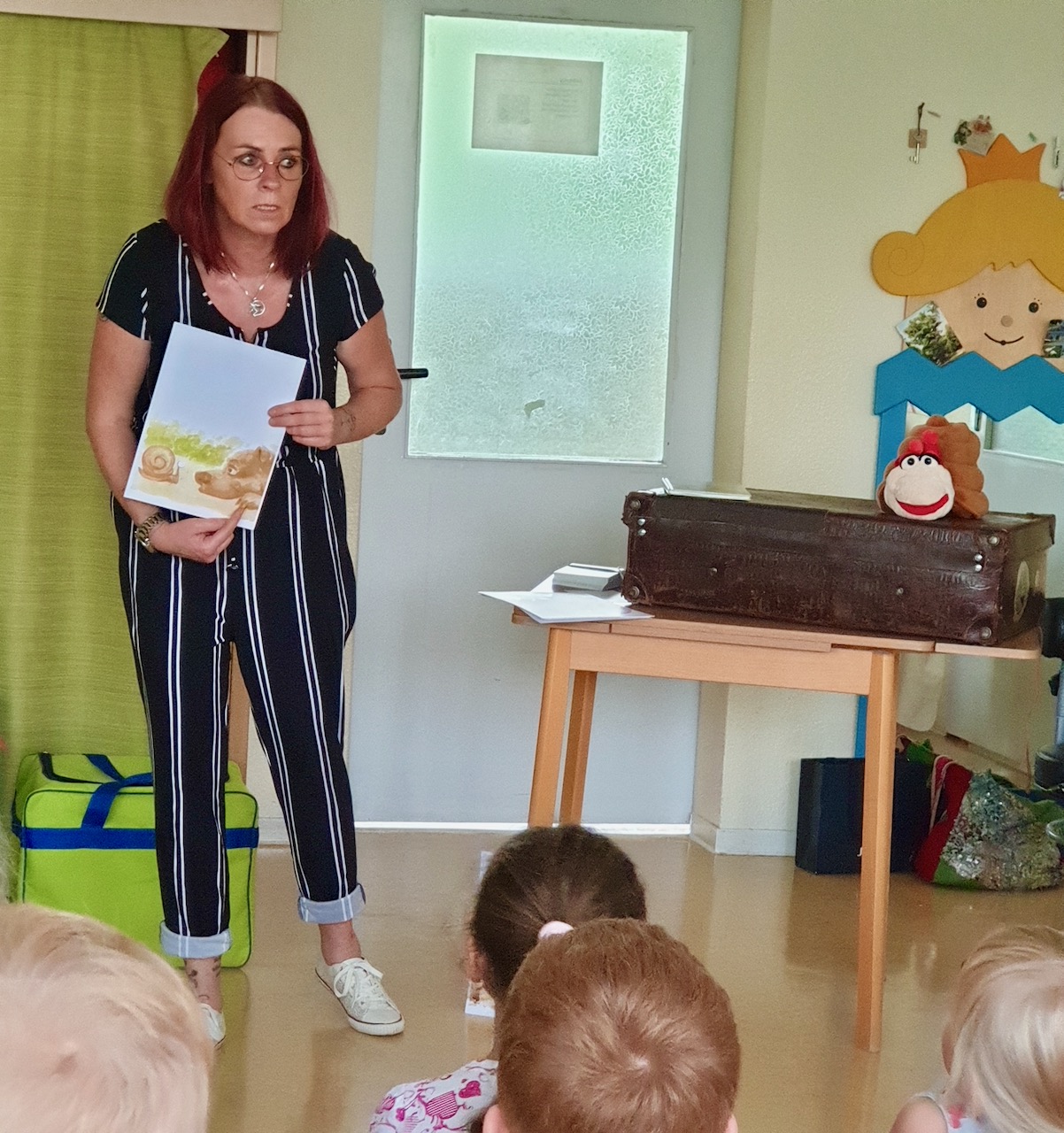 Um 10 Uhr waren auch schon die nächsten Knirpse da. Ganz gespannt hörten sie der Hexe Schnattayaga zu und hatten viel zu lachen. Dann stellte die Kinderbuchautorin ihnen die kleine Schnecke Schillili vor. Im Anschluss las sie die Geschichte vor. Auch wenn die Kinder, Schnattayaga durch die Abstandshaltung nicht persönlich die Hand reichen durften, hatten sie sehr viel Spaß.