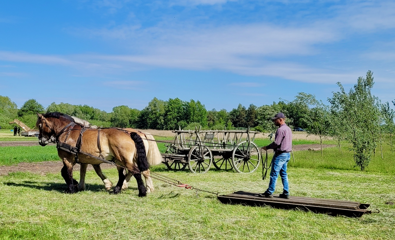 Besucher des Agroneums Alt Schwerin konnten gestern Pferdestärken in Aktion erleben. Zum Arbeitstag der Kaltblutpferde demonstrierten die Vierbeiner, im Rahmen eines vielfältigen Programms, wie Göpel angetrieben und Stämme gerückt werden. Vorführungen mit historischen Arbeitsgeräten und -maschinen gaben Einblicke in den Alltag der Pferde, wie er einmal war und in eine Tradition, die seit Mitte des 20. Jahrhunderts durch den Einsatz von motorisierten Landmaschinen abgelöst wurde. „Der Arbeitstag der Kaltblutpferde ist ein ganz besonderer Veranstaltungstag bei uns im Agroneum“, sagt Museumsleiterin Anke Gutsch „In enger Zusammenarbeit mit dem Alt Schweriner Kaltblut-Züchter und Landwirt Christian Platzeck richten wir diese Veranstaltung aus – in diesem Jahr nun bereits zum 10. Mal. Das Programm wurde zudem fachkundig durch Dr. Siegfried Hoffmann moderiert. So erlebten alle Besucher nicht nur Pferdestärken, die beeindrucken, sondern es gab auch viel Wissenswertes und Interessantes zu erfahren.“