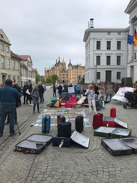 Auch Müritzer Reisebüro-Mitarbeiter waren heute mit von der Partie, und zwar in Schwerin vor der Staatskanzlei – unter anderem die Mitarbeiter des Reisebüros Karina in Waren.