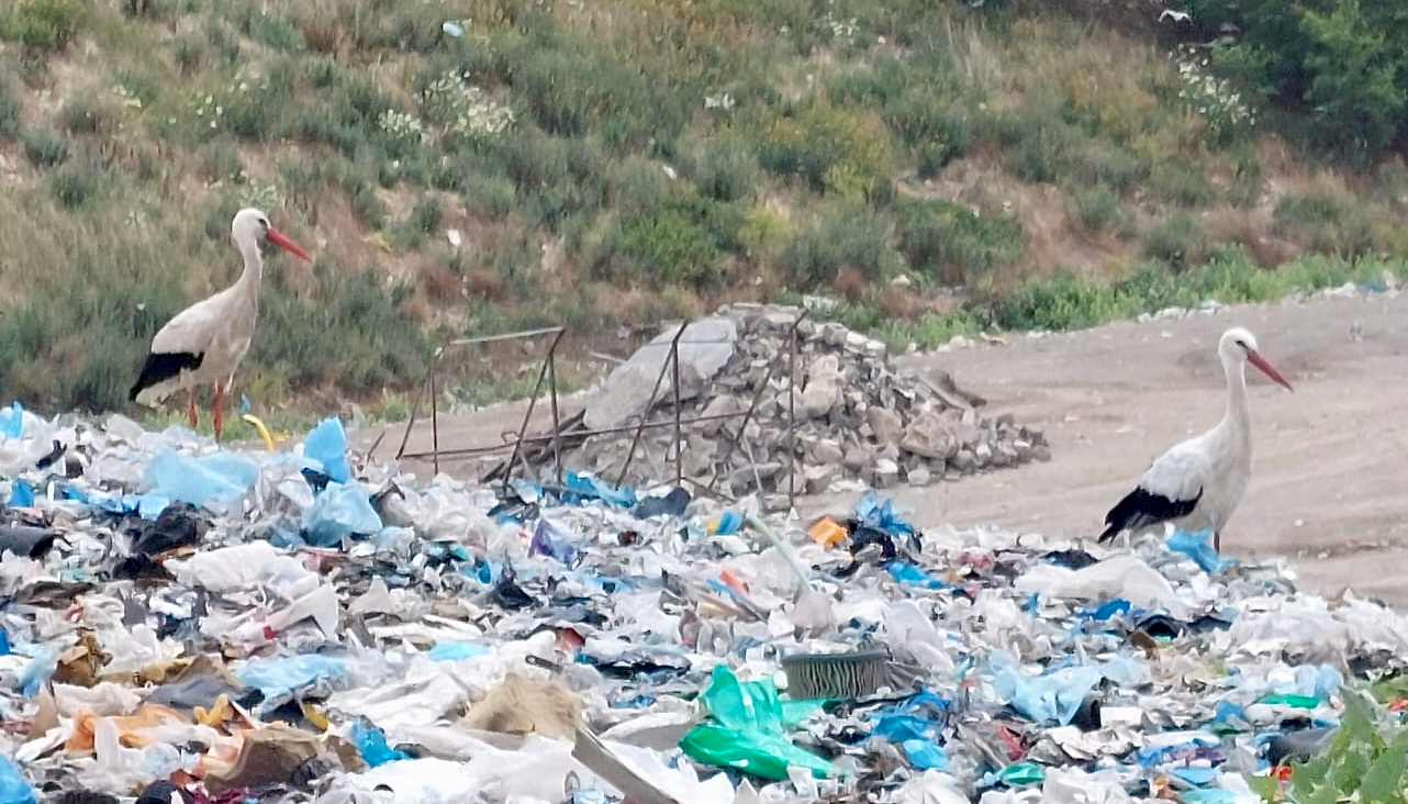 Derzeit wird ein Teil dieses „Heizmaterials“ in Rosenow zwischengelagert, da die Verbrennungsanlage ihre Wartungspause hat. Das haben viele Störche, Möwen, Greifvögel und Krähen mitbekommen und suchen in den riesigen Haufen nach Nahrungsresten.