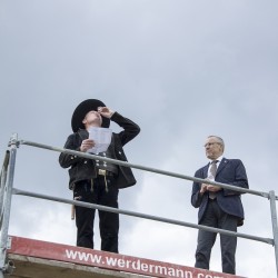 Es ist gerichtet: Auf dem neuen Jugendzentrum Warens weht seit heute Nachmittag die Richtkrone.