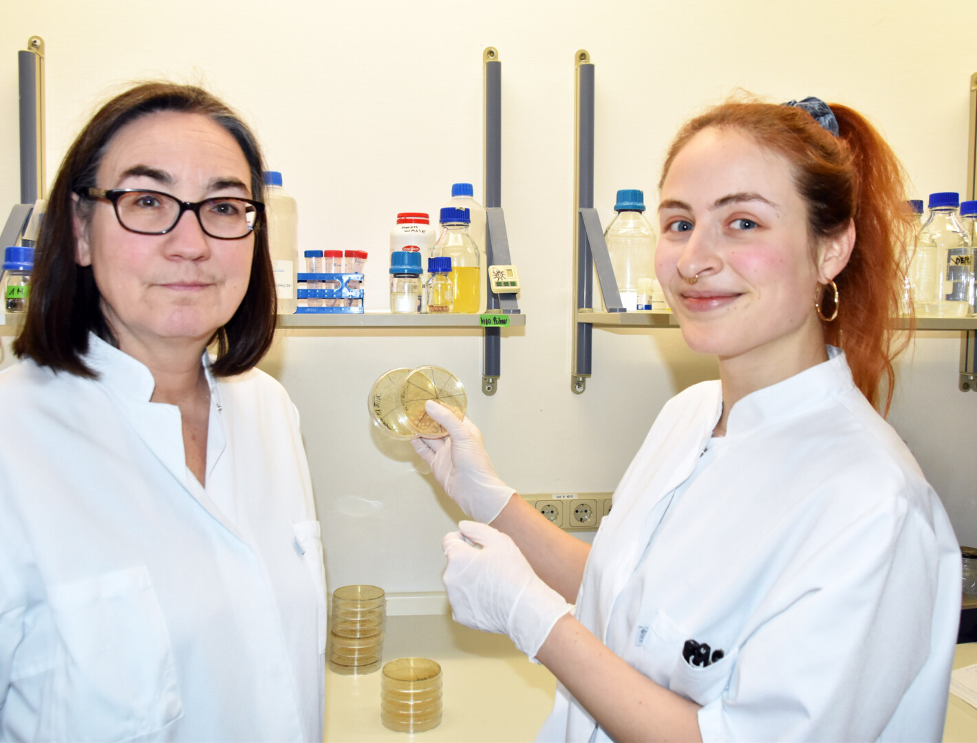 Bild: Dr. Nadja Patenge (l.) und Doktorandin Corina Abt erproben eine Antisense-Therapie zur Behandlung von Lungenentzündungen.