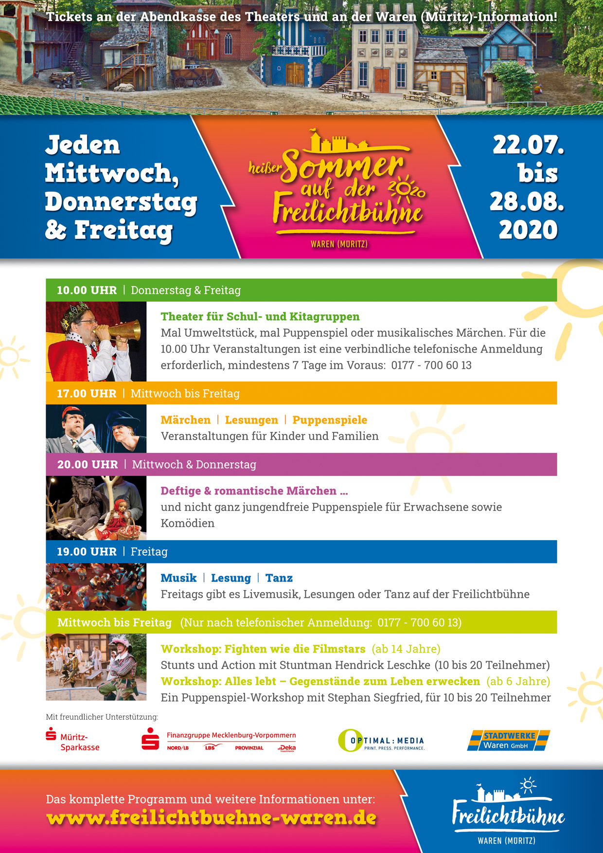Unterstützt wird der heiße Kultursommer auf der Freilichtbühne von der Stadt Waren (Müritz), vom Landkreis, von der Sparkassen-Finanzgruppe Mecklenburg-Vorpommern und der Müritz-Sparkasse und vom CJD.