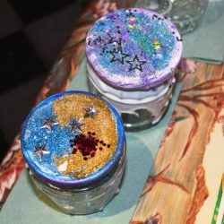 Gemeinsam wurden Pfeifenreiniger zu Wunderkerzen umfunktioniert und aus alten Einweckgläsern leuchtende und glitzernde Glühwürmchen Gläser gebastelt.