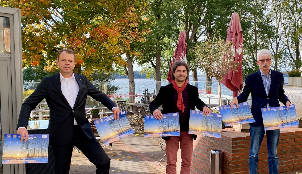 Foto oben: Sie präsentieren stolz die neuen Kalender der Weihnachtslotterie: Harro Freyschmidt und Tom Engels vom Rotary-Club sowie Helmut Kücker vom Lions-Club (von links).