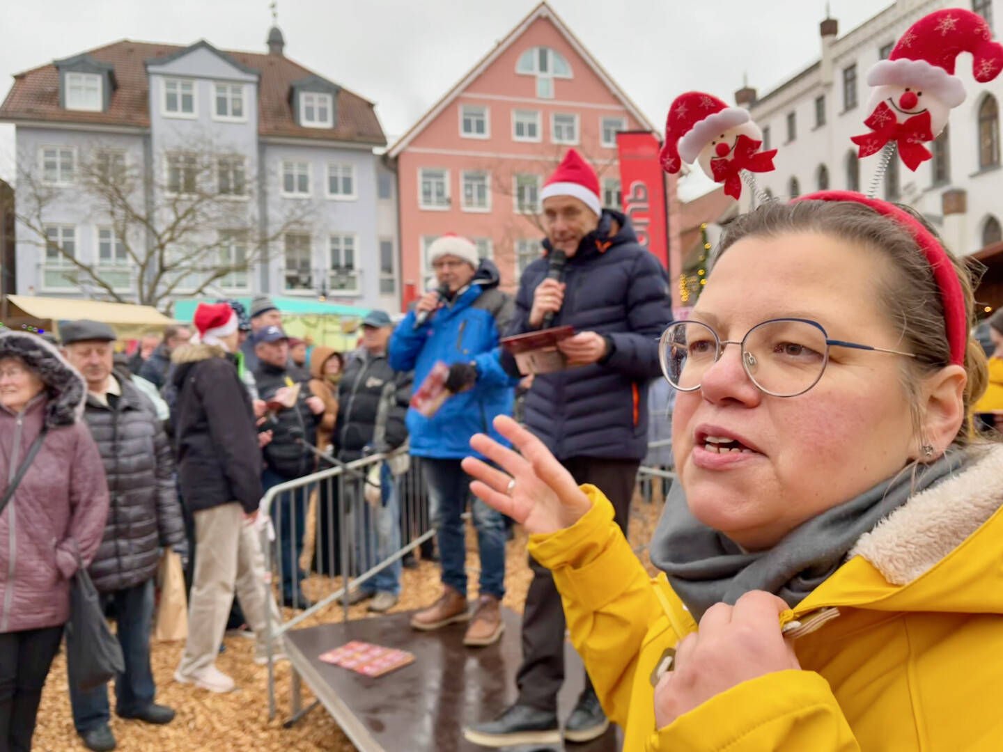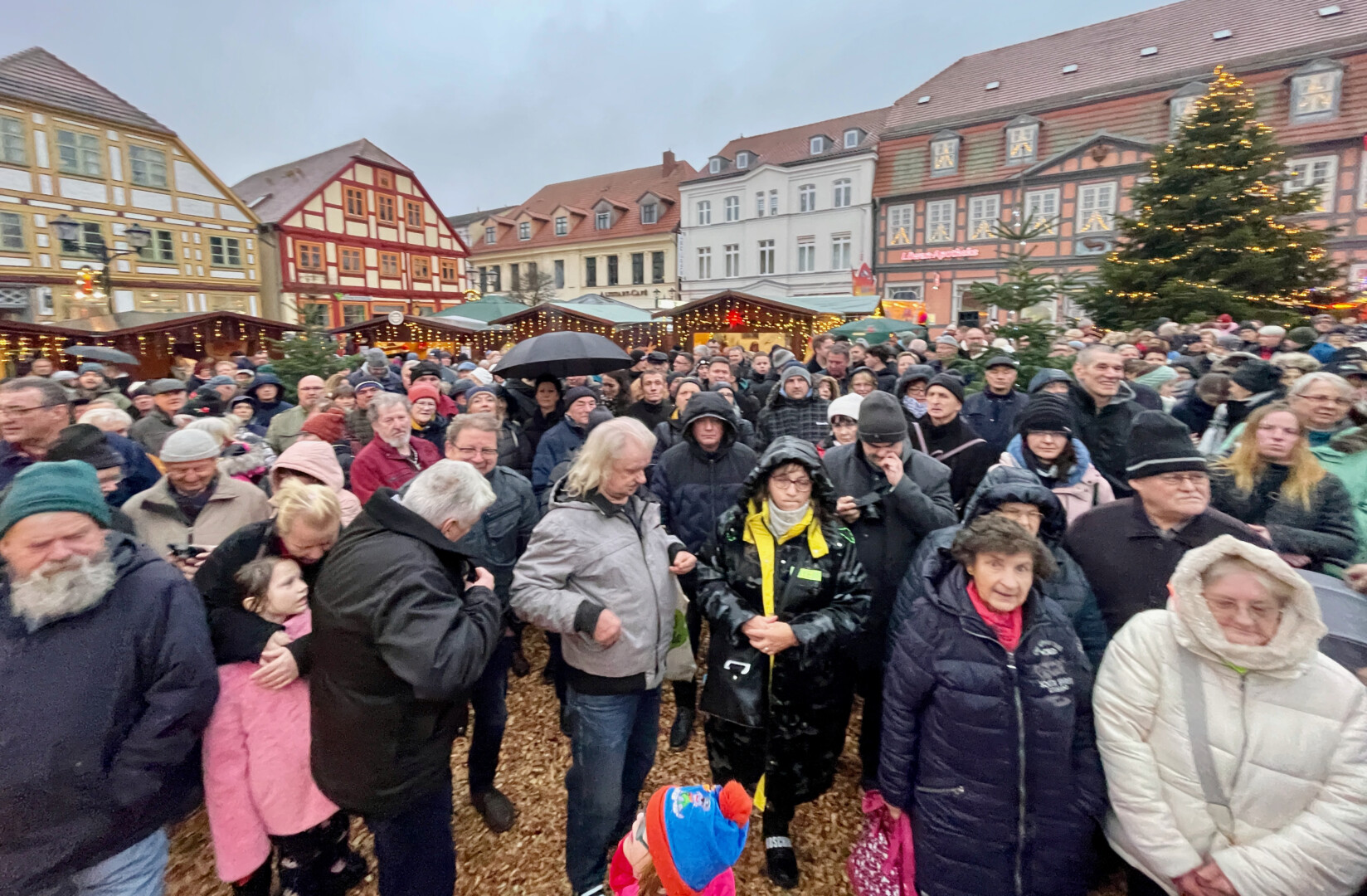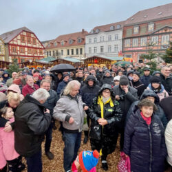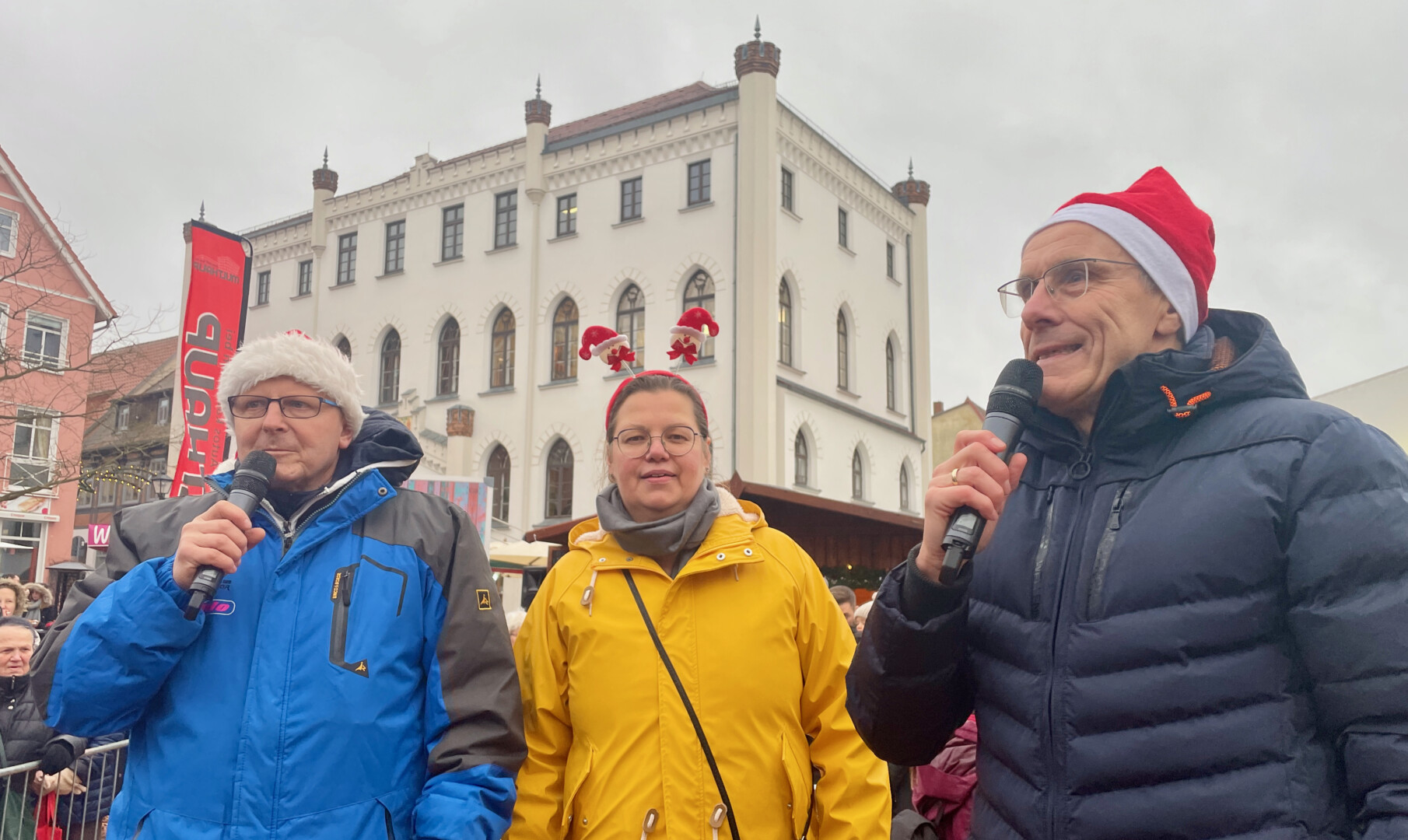Neu in diesem Jahr: Neben Olaf Gaulke und Bürgermeister Norbert Möller moderierten Geschäftsführer und Unterstützer des Weihnachtsmarktes die Verlosung. Und so standen Mike Albrecht, Chef der WWG, Ulf Karberg vom gleichnamigen Zweiradhaus, Matze Wolter vom Autohaus Multhaup sowie Cornelia Runge als Chefin der Waren (Müritz)-Information auf der Bühne und hielten die vielen Besucher bei Laune. Das war bei Nieselregen und Wind auch bitter nötig.