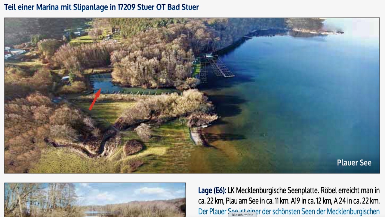 Wem das alles zuviel bürokratischer und Bauaufwand ist, der kann sich am 7. März auch gleich zu Beginn der Auktion um eine Hafenanlage am Plauer See mit bemühen. Dort gelten aber deutlich andere Voraussetzungen: So steht eine komplette Hafenanlage am südlichen See-Zipfel in Bad Stuer zur Auktion an. Dort beginnt die Versteigerung bei mindestens 198 000 Euro. An der See-Stelle sind eine Steganlage mit 27 Schwimmstegen und 54 Liegeplätzen genehmigt. Derzeit liegen 18 Schwimmstege dort aus. Auch eine 1000 Quadratmeter große Wiese gehört zum Portfolio.