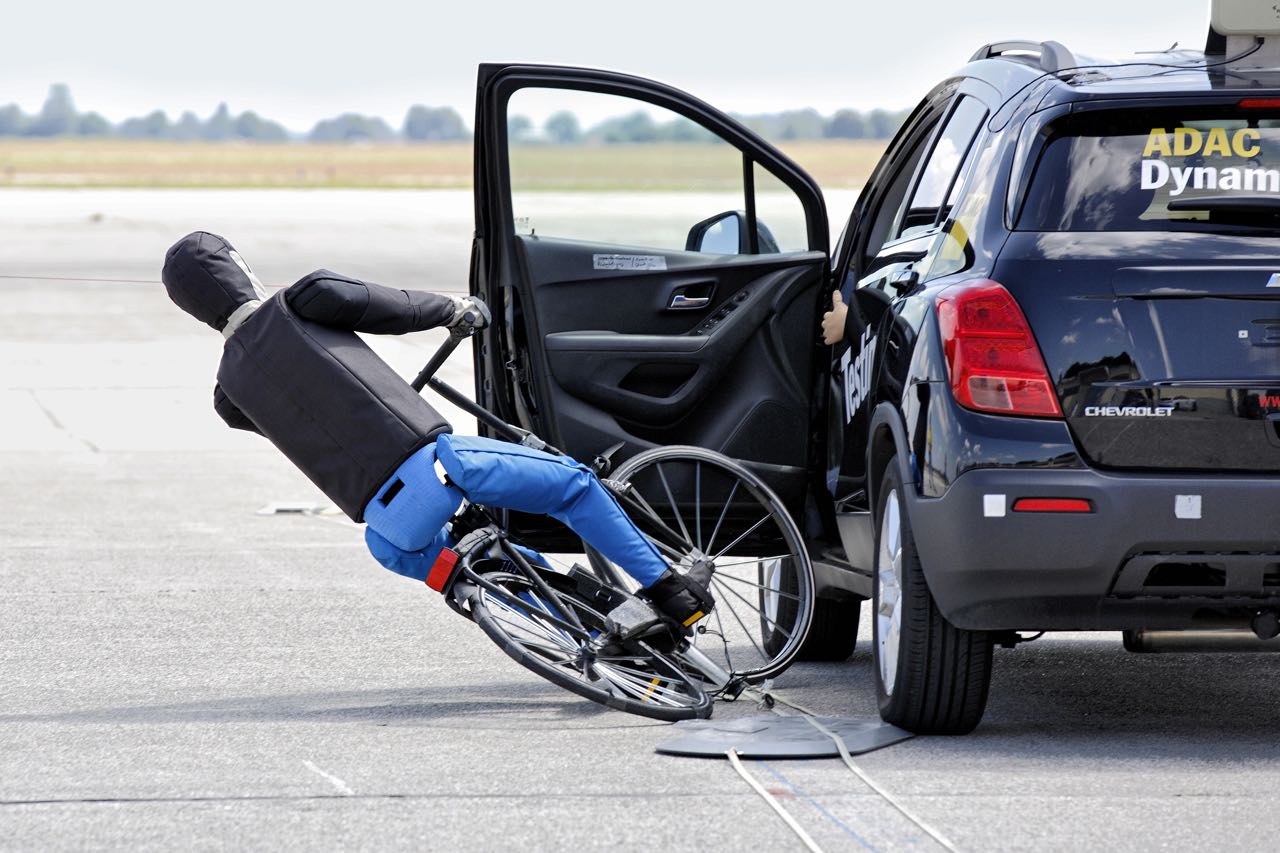 Für den Test fuhren eine Autoattrappe (50 km/h), ein Radfahrer (20 km/h) und ein E-Scooter (20 km/h) am stehenden Testfahrzeug vorbei. Einmal ohne ein dahinter parkendes Auto und einmal mit einem in 50 cm Abstand stehenden Fahrzeug. Die Fahrertür wurde in dem Moment geöffnet, in dem für die jeweiligen Fahrzeuge ein Anhalten gerade noch möglich gewesen wäre (Anhalteweg = Schrecksekunde und Bremsweg). Neben der Fahrertür wurde auch die generelle Funktion für alle Fahrzeugtüren getestet, sowie die Zeit gemessen, in der das System nach Abstellen des Motors aktiv blieb.