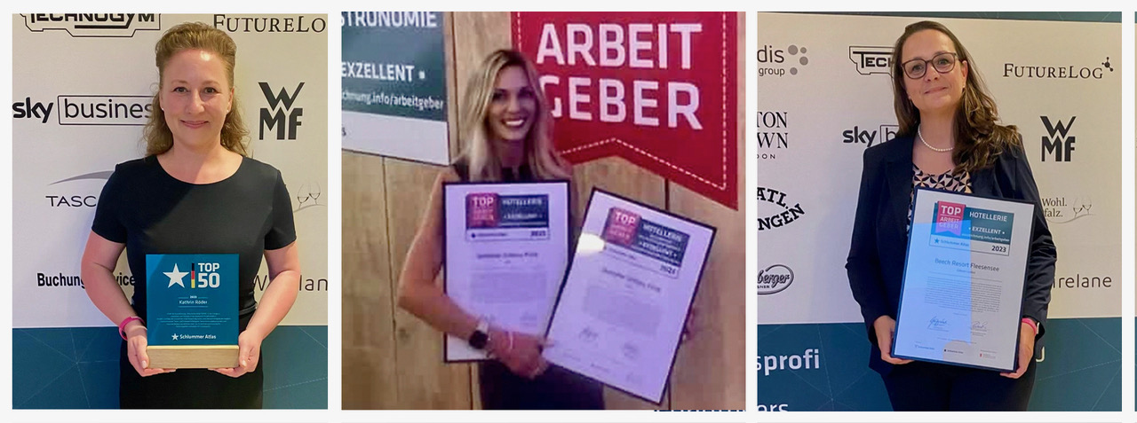 Die Erhebung erfasst unter anderem Zufriedenheitsfaktoren zum Arbeitgeber, zur Arbeitgeberwahl und zum Arbeitsstandort, Determinanten der Arbeitgebermarke, Imagefaktoren des Gastgewerbes sowie die Weiterempfehlungs-Absicht des aktuellen Arbeitgebers. Das Schlosshotel Klink hat diese Auszeichnung auch bereits im vergangenen Jahr bekommen. Ein Zeichen dafür, dass in dem Haus im Umgang mit den Mitarbeitern vieles richtig gemacht wird. Die Auszeichnung für das Klinker „Märchenschloss“, das gleich in zwei Kategorien überzeugen konnte, nahm Daniela Lison entgegen. Für das Beech-Resort Fleesensee durfte Chefin Anja Lichtwark die Urkunde in den Händen halten, und für das Schloss Fleesensee Kathrin Röder, die dann auch noch die persönliche Ehrung als eine von 50 Top-Hoteliers erhielt.