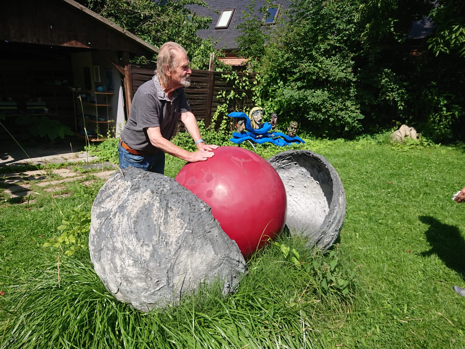 Das „Wende-Denkmal“ hatte Poppe eigentlich an der Georgenkirche aufstellen wollen. Der Warener gehörte zu den zehn Künstlern, die in die Endrunde gelangten, aber gewann nicht. So hat er eine etwas kleinere Version seines Kunstwerkes in den Garten gestellt. “