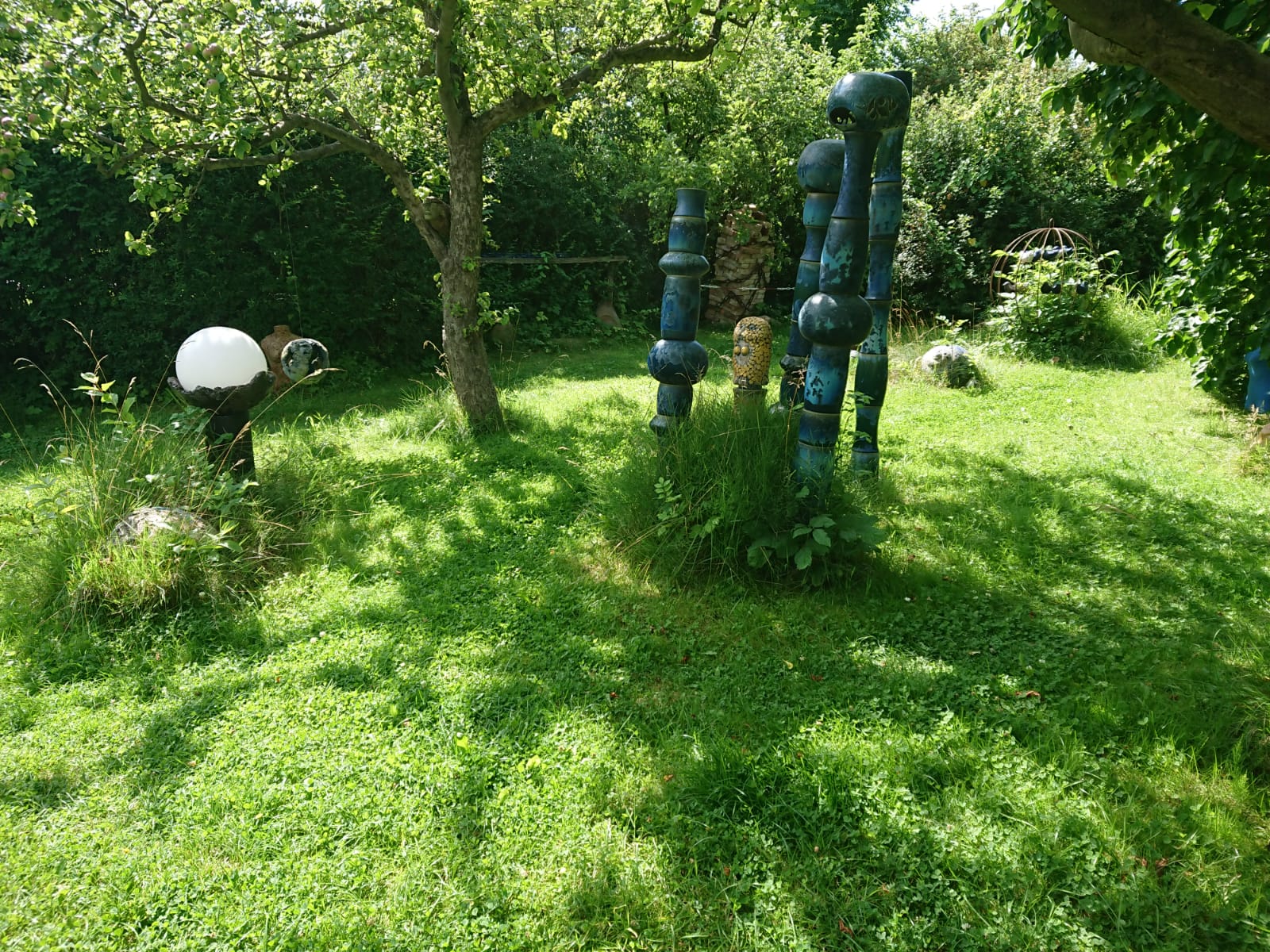 Rund 20 000 Besucher, schätzt der Warener, haben sich seit der Öffnung seinen Phantasiegarten schon angesehen. Inzwischen stellt seine Tochter, die in der Freizeit töpfert, auch mit aus, vor allem Gebrauchskeramik.