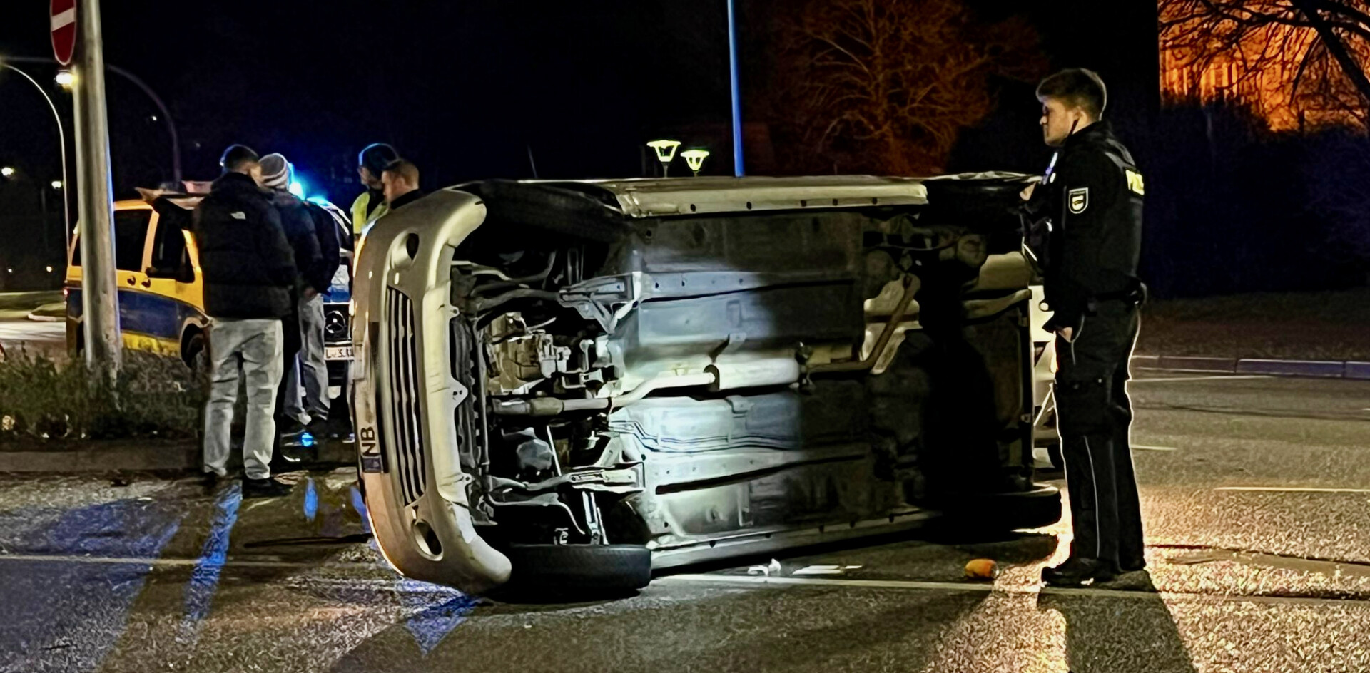 Am Neubrandenburger Ring hat sich heute Abend ein Auto mehrfach überschlagen, der Fahrer erlitt leichte Verletzungen. Laut Polizei war ein 19 Jahre alter syrischer Staatsangehöriger mit seinem Pkw Chevrolet auf der Neustrelitzer Straße unterwegs und wollte auf den Ring auffahren. Aufgrund nicht angepasster Geschwindigkeit geriet der Wagen während des Abbiegevorgangs an den linken Straßenrand und kollidierte mit dem Bordstein. Dadurch überschlug sich der Pkw mehrfach und kam auf der Beifahrerseite zum Liegen. Der Fahrzeugführer wurde leicht verletzt durch einen Rettungswagen in das Klinikum Neubrandenburg gebracht. Den entstandenen Schaden gibt die Polizei mit rund 4000 Euro an.