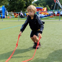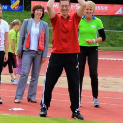 Von den 800 Teilnehmern kamen 550 aus den Schulen der Region und 150 aus den Kitas. Schon die Kleinen gaben alles. Zwar flossen hier und da auch mal ein paar Tränchen, aber nicht, weil die Anforderungen zu hoch, sondern der Ehrgeiz zu groß war. Für den goldenen Fitnessorden mussten in den einzelnen Disziplinen drei Punkte geholt werden. Manch‘ ein kleiner Sportler haderte mit sich, wenn’s nur zwei wurden. „Es ist schön zu sehen, mit welchem Elan die Kinder dabei sind und wie gerne sie sich bewegen. Das müssen wir weiter fördern. Solche Veranstaltungen sind dafür sehr gut“, meinte Trainer Hoffmann am Rande der Veranstaltung.
