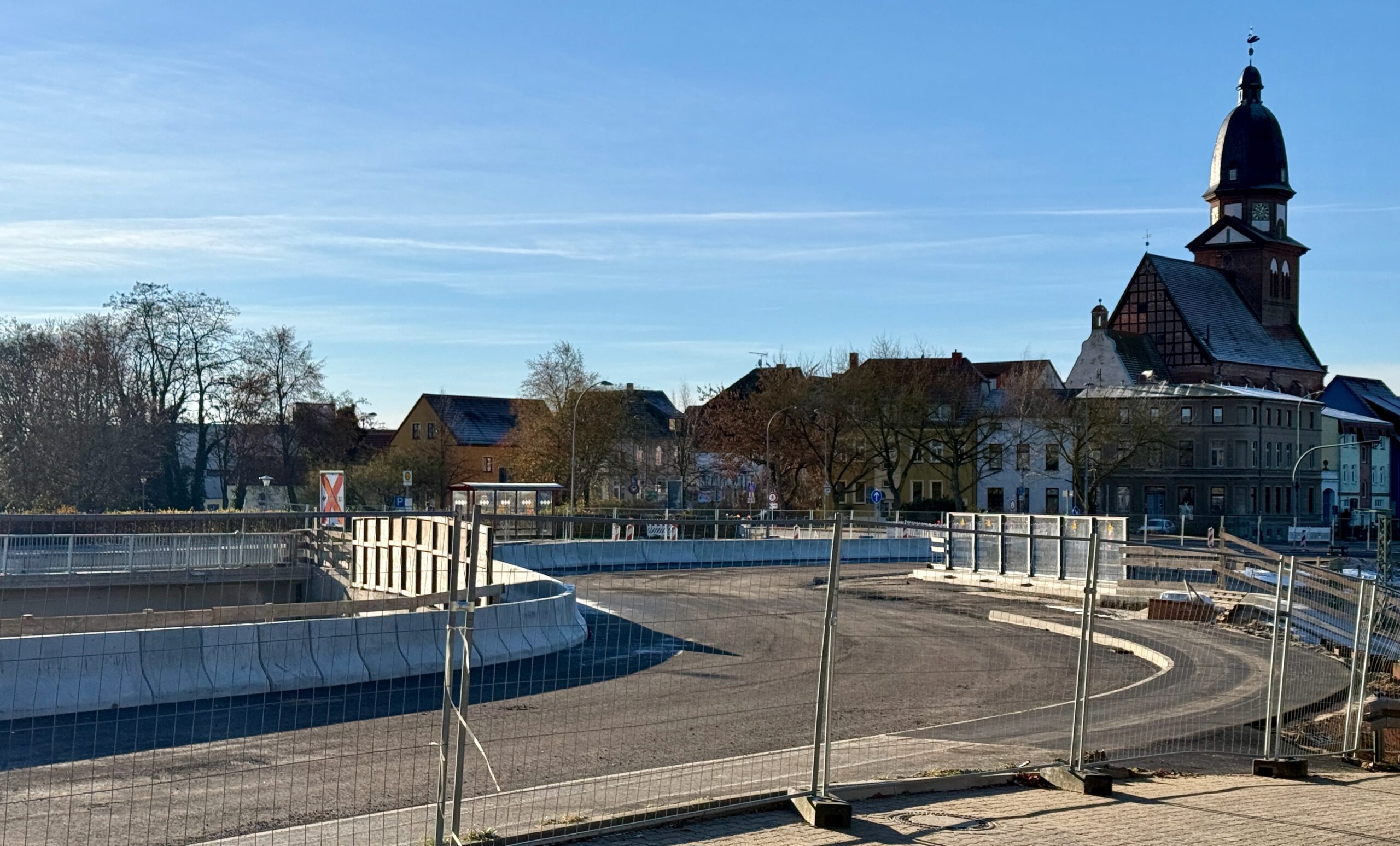 Die Arbeiten für den Ersatzneubau der Brücke über die Bahngleise auf der Bundesstraße 192 in Waren liegen nach Auskunft des zuständigen Amtes im Zeitplan. Derzeit wird der Straßenbau für die künftige Umfahrung vorbereitet, damit der Verkehr Ende des Jahres über das erste Teilstück der neuen Brücke rollen kann. Für die dafür notwendigen Arbeiten am Mittelstreifen sowie zur Herstellung einer sicheren, provisorischen Fußgängerführung ist es allerdings erforderlich, ab voraussichtlich Montag, 1. Dezember, eine Fahrspur der B 192 zu sperren. Der Verkehr wird währenddessen einspurig per Ampelregelung an der Baustelle vorbeigeführt. Die geänderte Verkehrsführung bleibt voraussichtlich rund eine Woche bestehen.