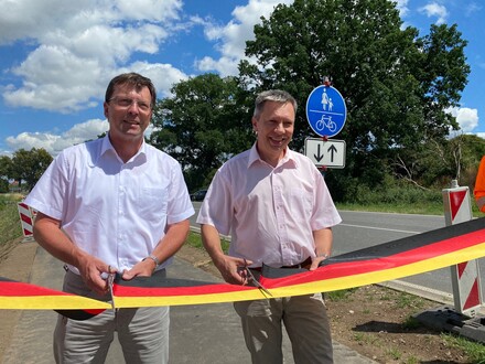 Er ist fertig! Nachdem das erste Teilstück des Radweges zwischen Neustrelitz und Penzlin bereits in den Jahren 2018 und 2019 übergeben wurde, ist nun auch der letzte Teilabschnitt des Straßenbegleitenden Radweges im Zuge der B 193 fertiggestellt. Heute haben Jens Krage, Leiter des Straßenbauamtes Neustrelitz, Penzlins Bürgermeister Sven Flechner und Andreas Grund, Bürgermeister der Stadt Neustrelitz, den Radweg symbolisch freigegeben. „Ab sofort haben die Radfahrer freie Fahrt zwischen Neustrelitz und Penzlin. Das ist gut und erhöht die Verkehrssicherheit. Gerade für die Schulkinder ist der neue Weg eine enorme Verbesserung. Wir freuen uns, dass der Radweg fertig ist“, erklärt Jens Krage, Leiter Straßenbauamt Neustrelitz.