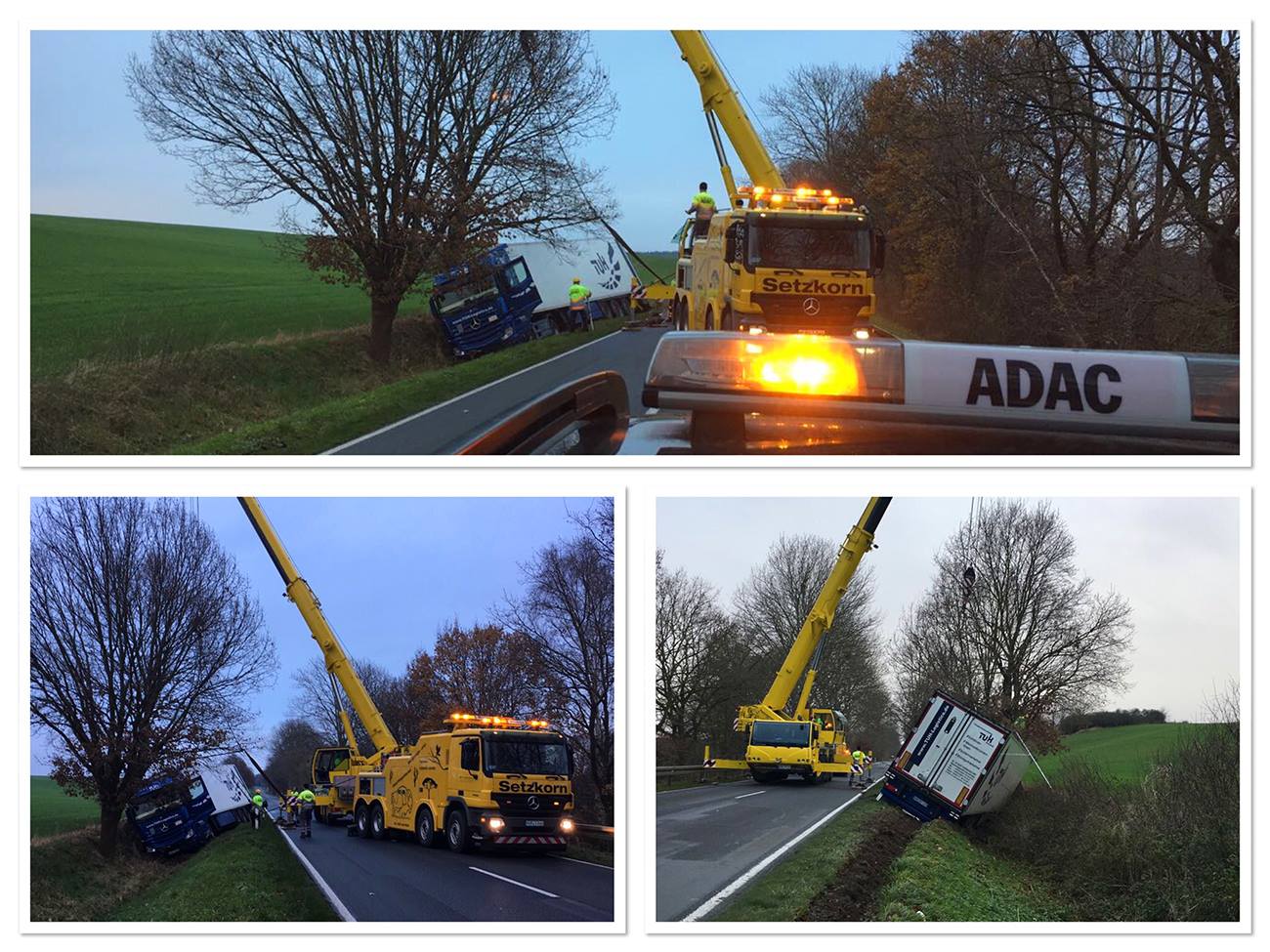 Eine Spezialfirma wurde angefordert und ist gegenwärtig dabei, den Lkw zu bergen. Seit 9:30 Uhr ist die B194 in diesem Bereich voll gesperrt. Die Vollsperrung soll bis etwa 12 Uhr andauern, teilte die Bergungsfirma mit.