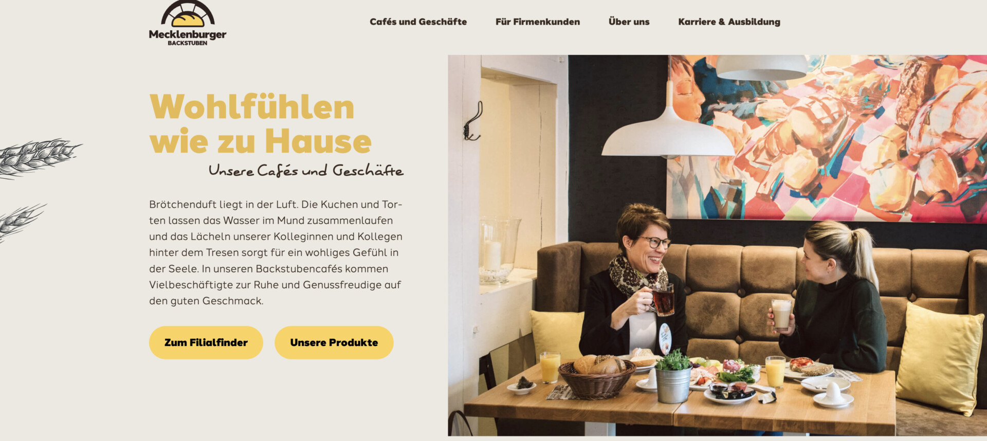 Das Warener Traditionsunternehmen Mecklenburger Backstuben präsentiert sich seit wenigen Tagen ganz neu im weltweiten Netz: Nach viel Arbeit ist die neue Homepage unter www.meckback.de endlich online. „Wir freuen uns, dass wir unseren Kunden auf sehr anschauliche Art und Weise viel über unser Familienunternehmen erzählen können. Natürlich gibt es Informationen zur Geschichte der Firma, aber auch zu unseren Cafés und Filialen sowie über unsere Produkte. Außerdem finden Interessierte auch unsere ausgeschriebenen Stellen“, berichtet Geschäftsführerin Dr. Christina Kohn.