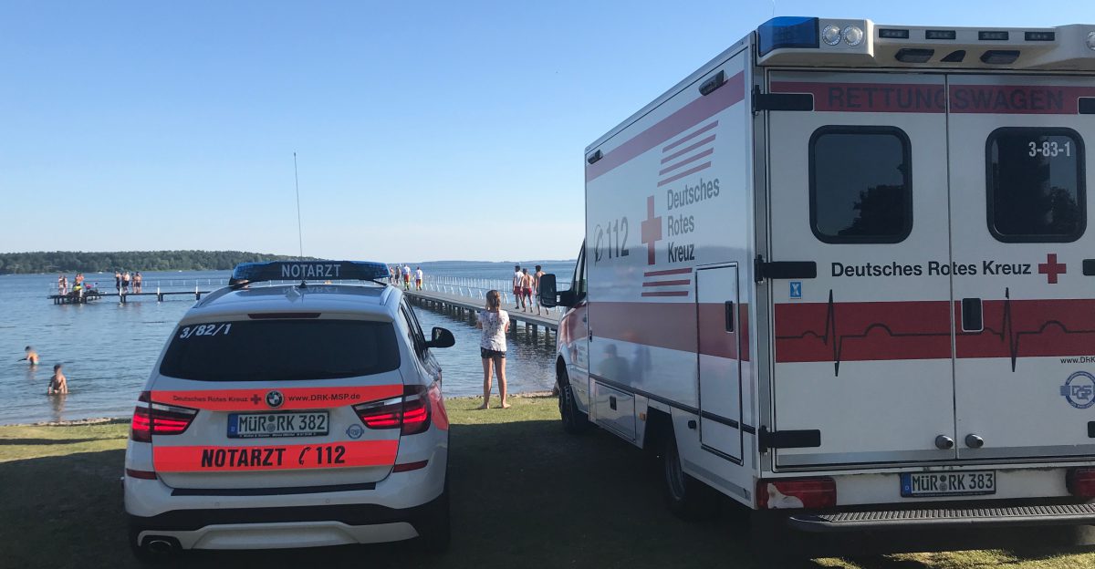 Es sind dramatische Szenen, die sich heute Abend am beliebten und auch sehr belebten Warener Volksbad abgespielt haben: Ein Jugendlicher ist Augenzeugenberichten am Ende der Brücke plötzlich untergangen. Die Zeugen dachten zunächst, dass er taucht. Als er aber nicht wieder hoch kam, sprangen sie hinterher.