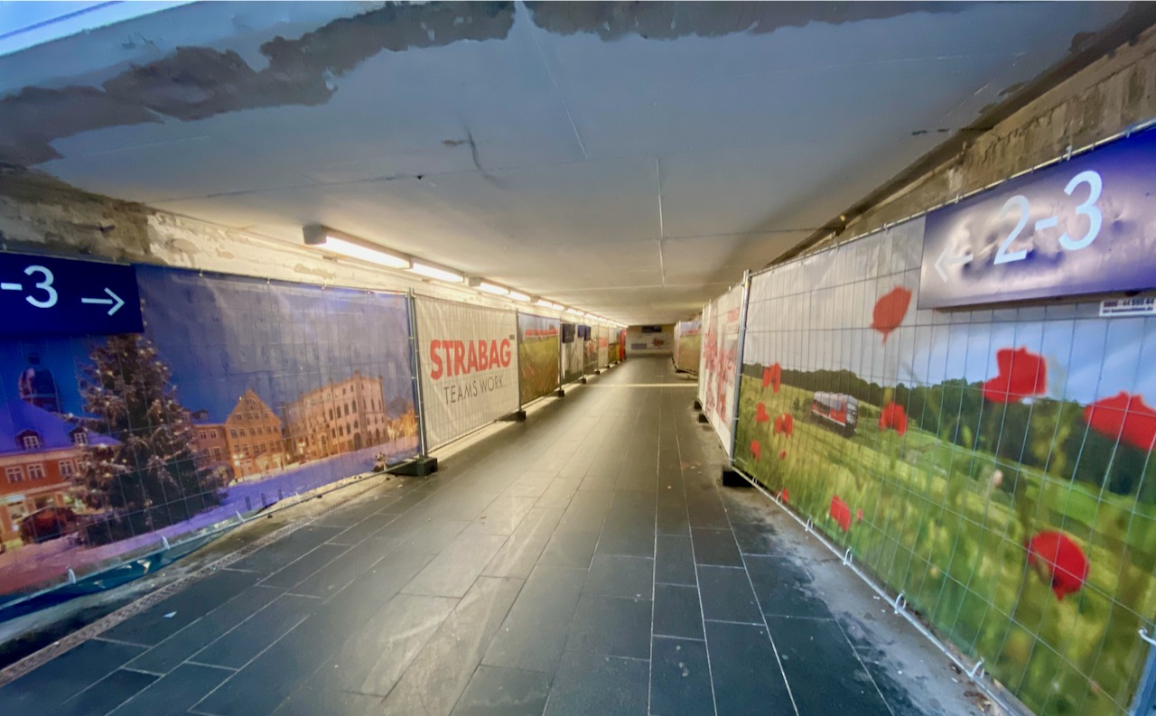 Während der Bauarbeiten, die am morgigen Montag beginnen, bleibt der Tunnel zugänglich, Passanten sollen mindestens 1,80 Meter Breite zur Verfügung stehen. „Wir bemühen uns, die Beeinträchtigungen so gering wie möglich zu halten“, so eine Bahnsprecherin. Dennoch müsse mit Lärm und Staub gerechnet werden.