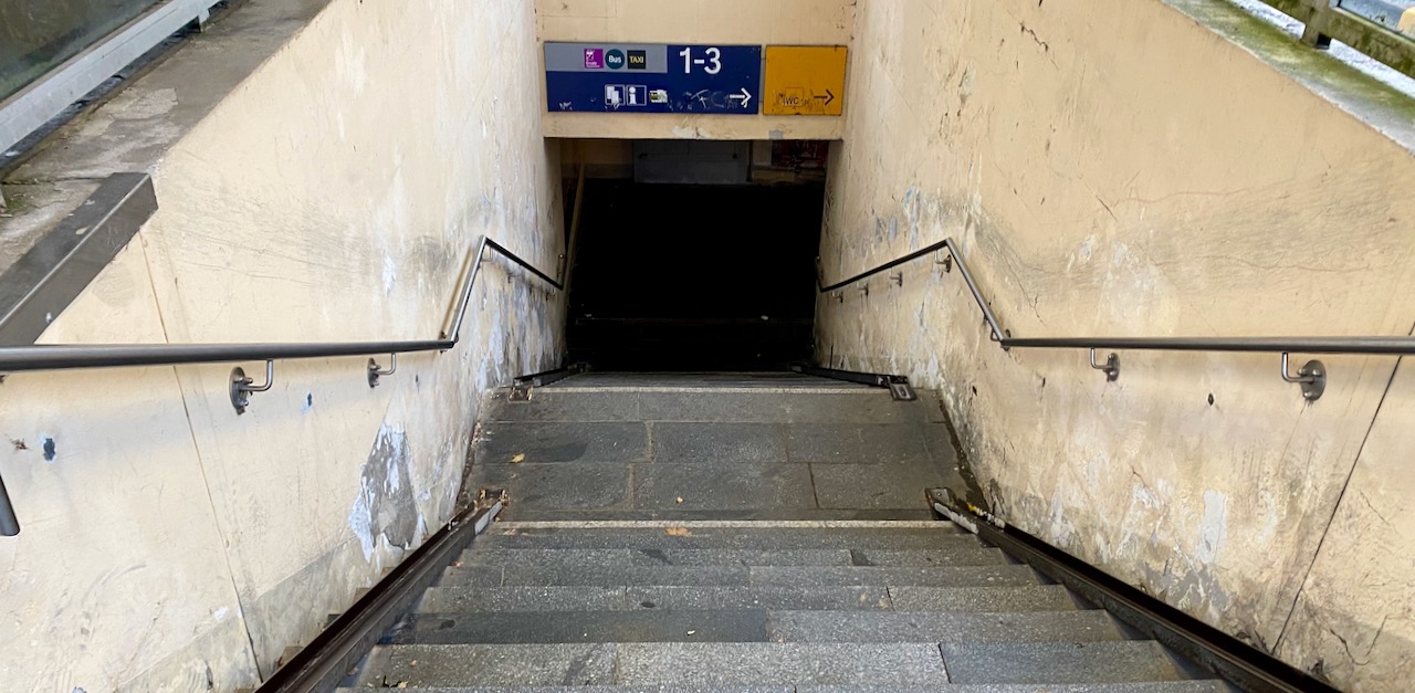 Die Bahn wäre mit ihrem Anteil fertig, wäre die Stadt mit ihrem in die Puschen gekommen. Sicher war es wieder mal ein Finanzierungsthema in den heiligen Hallen Zum Amtsbrink, das die Deutsche Bahn und ihren Auftragnehmer, die STRABAG ausbremste. Den Tunnel aufhübschen, wie schön. Inwieweit Kunststoffpaneele dafür tauglich sind, wird sich später zeigen. Möglicherweise haften zwar keine Graffiti auf deren Oberflächen, dafür wirken die Wände mit Schrauben übersät, ziemlich unruhig. Der Hohlraum darunter hat den Nachteil, dass sich dahinter Dreck sammelt, der die Notdurft derer, die es nicht zur nächsten Toilette schaffen, aufnimmt und der schwer gründlich beseitigt werden kann. Für unsere Nasen wird es so eher nicht angenehmer. Andererseits bleiben zunehmende Schäden, z.B. Ausblühungen, die mangels Abdichtung der Seitenwände in der Bauphase, weiter fortschreiten, durch die Blenden unsichtbar. Ich stellte bei der „frühzeitigen Bürgerbeteiligung“ infrage, dass eine zuverlässige Barrierefreiheit durch eine Rampe auch auf der Südseite nicht möglich sei. Eine Antwort bekam ich nie. Zweifellos wäre zwischen Straße und Bahn Platz, wenn man die Bucht für die Busse leicht verändert und einen Fahrleitungsmast versetzt. Warum die Stadt weiter an der mieserablen Lösung Aufzug festhält, kann ich nicht nachvollziehen. Eines ist klar: Die ist billiger. Der wird, wie jeder bei der Bahn, sehr langsam fahren, viel kaputt sein und man wird in irgendeinem Servicecenter am anderen Ende der Welt anrufen und auf Antwort warten müssen, damit man ihn benutzen kann oder falls man in dem Kasten eingesperrt ist. Die Wege unserer Damen und Herren sind unergründlich.