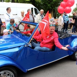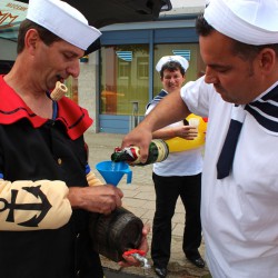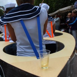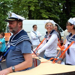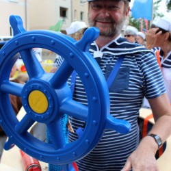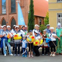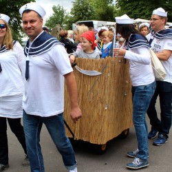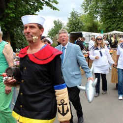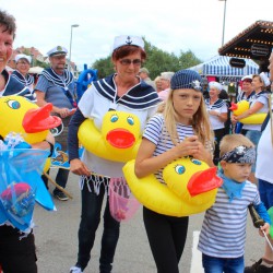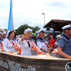 Wahrscheinlich bietet sich für einen richtig schönen großen Umzug dann wohl eher die Sail an, denn bei Müritzfest muss sich der Umzug durch die Händlermeile – vorbei an Plüsch-Hausschuhen und pinkfarbenen Leggins – schlängeln, was nicht gerade zur guten Stimmung beiträgt.