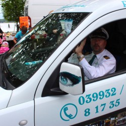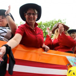Dennoch: Diejenigen, die bei Warens Müritzfest-Umzug heute dabei waren, hatten Spaß und steckten damit die vielen Zuschauer an. Eindeutiger Sieger: Wieder das Team der WOGEWA, das als Schiffscrew mit allem, was dazu gehört, durch die Straßen zog. Nur Geschäftsführer Martin Wiechers erschien in Schlips und Kragen. Allerdings mit einem Hai im Arm. Er war schlicht und einfach der „Miethai“.